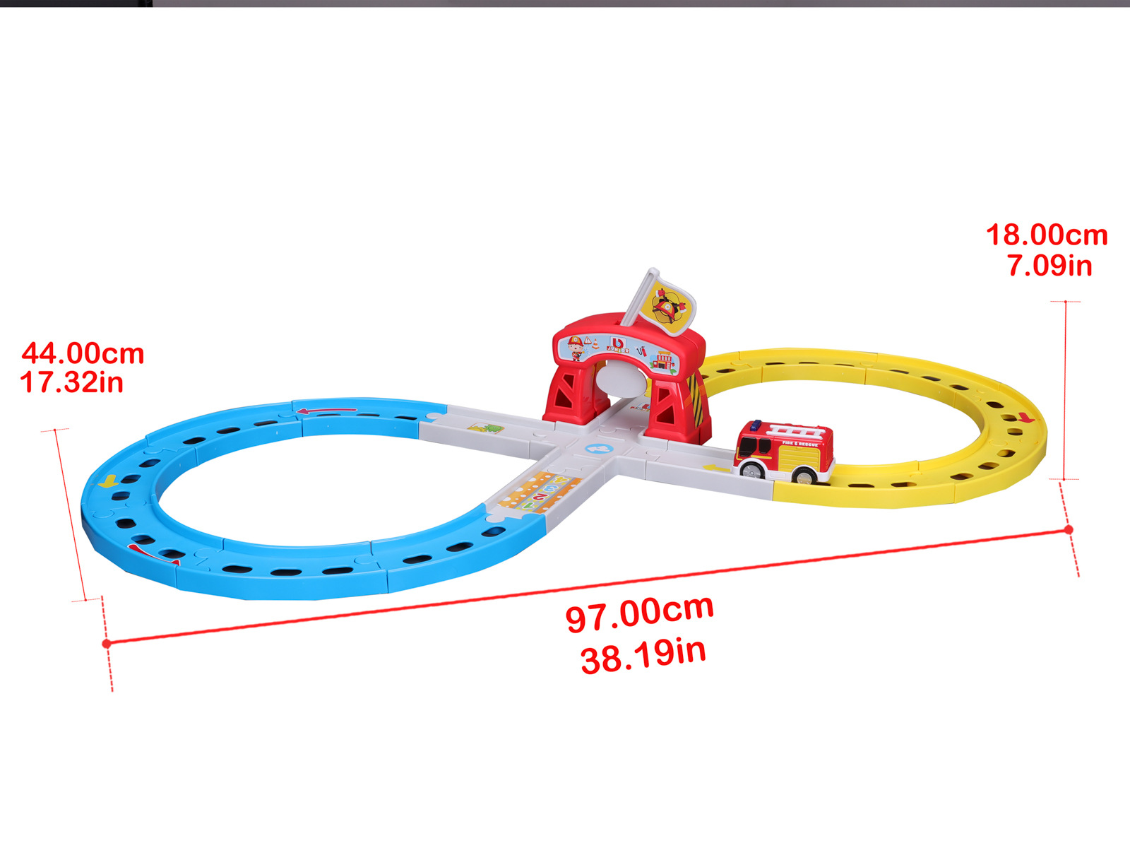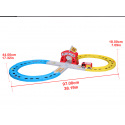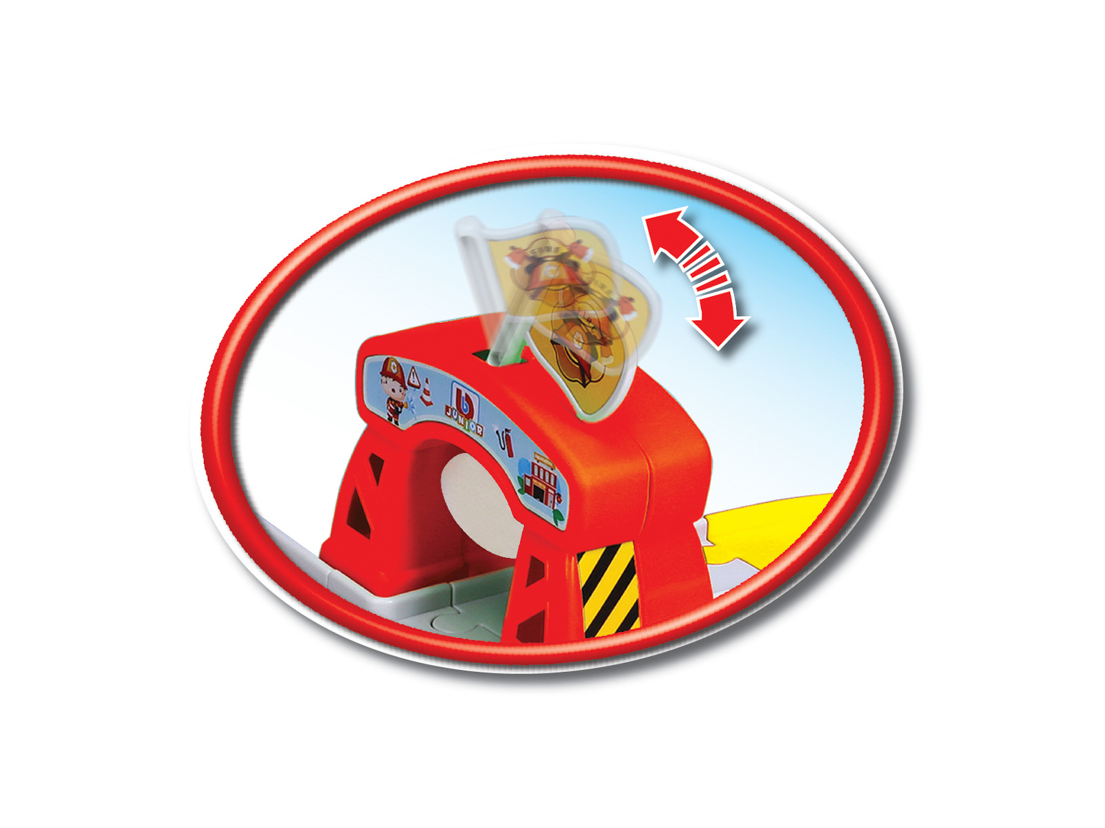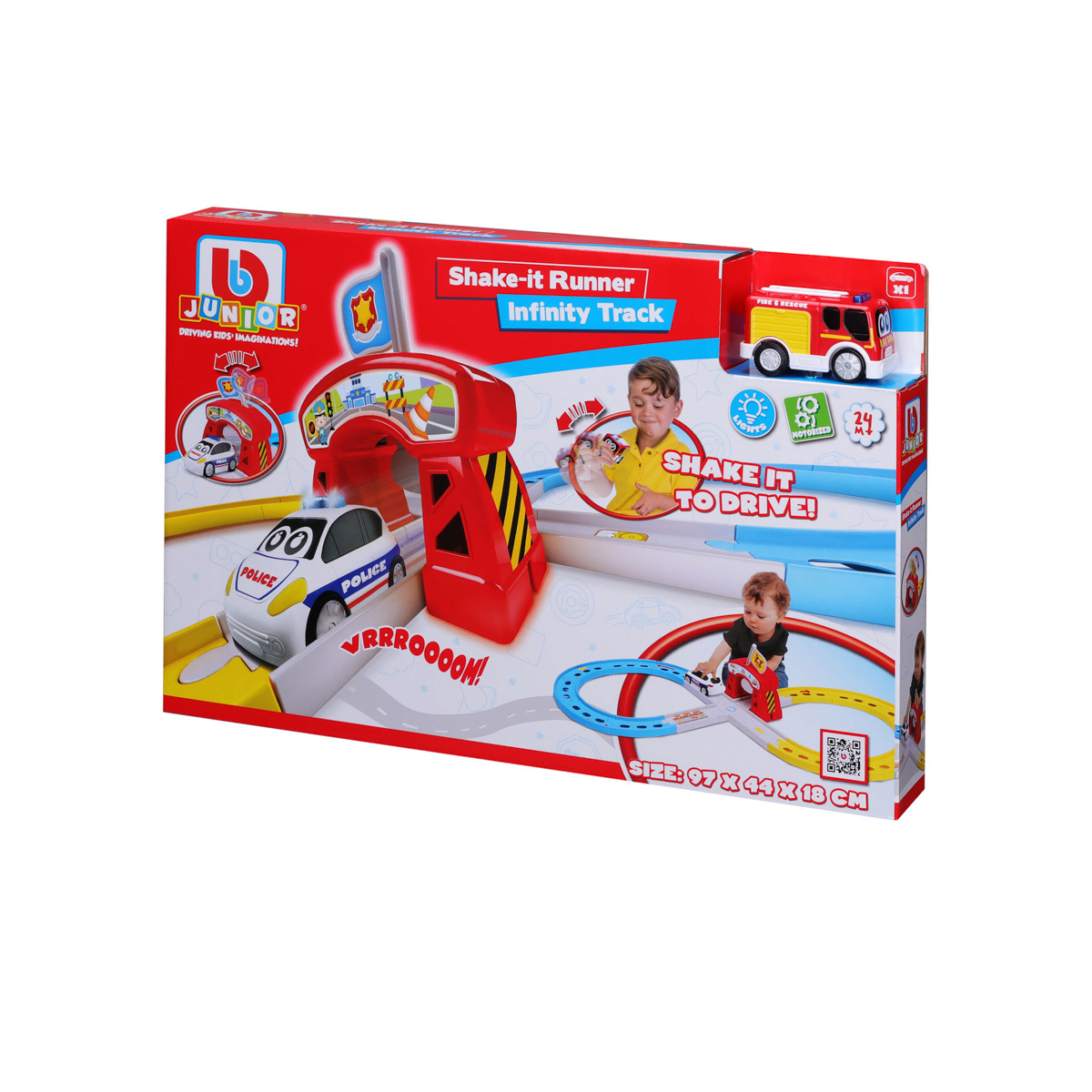 Závodní dráha s hasičským autíčkem BB Junior. Snadno sestavitelná nekonečná dráha s tunelem. Funguje na principu zatřesení autíčkem, které se poté pustí po závodní dráze a jezdí. Při projetí autíčka tunelem se pohybuje vlajka umístěná na tunelu. Hasičské autíčko má světelné efekty. Délka dráhy: 250 cm.Autíčko funguje na dvě baterie AAA, které nejsou součástí balení. Rozměr závodní dráhy: 44 x 97 x 18 cm. Rozměr balení: 33 x 50,8 x 6,35 cm. Věk: 24 m+