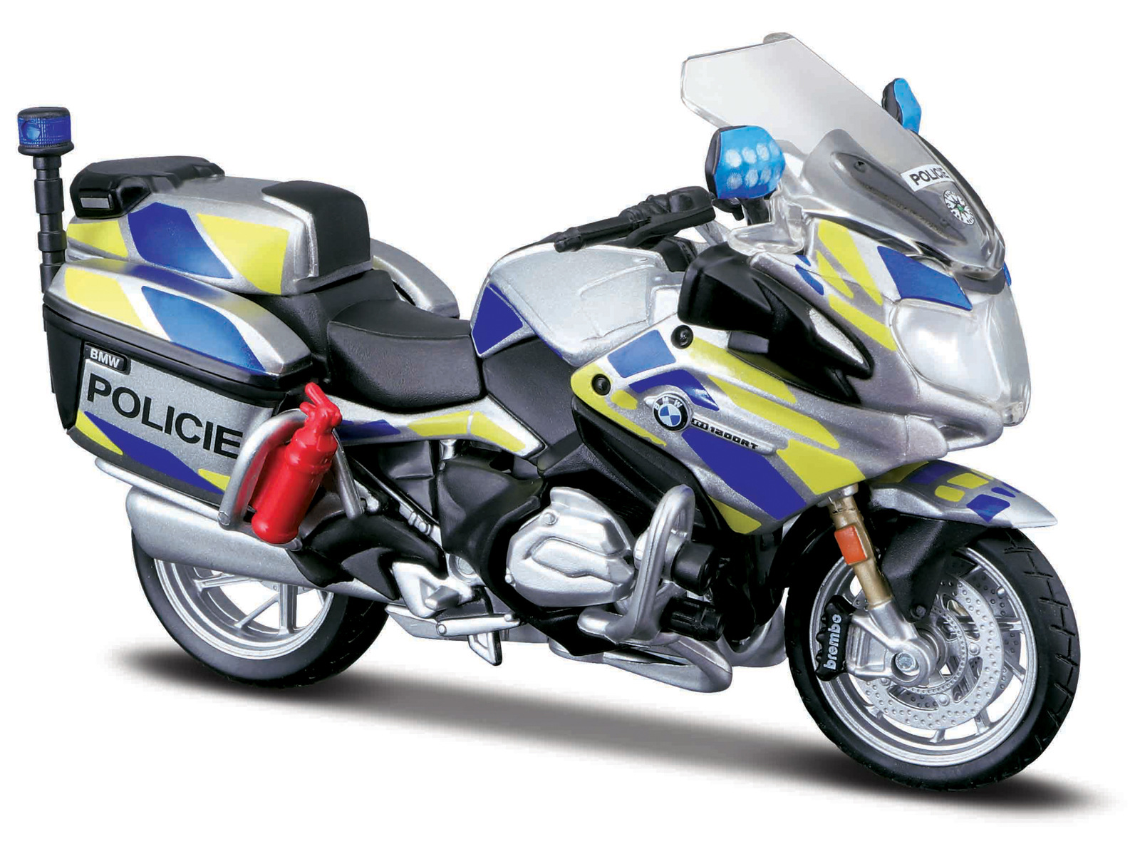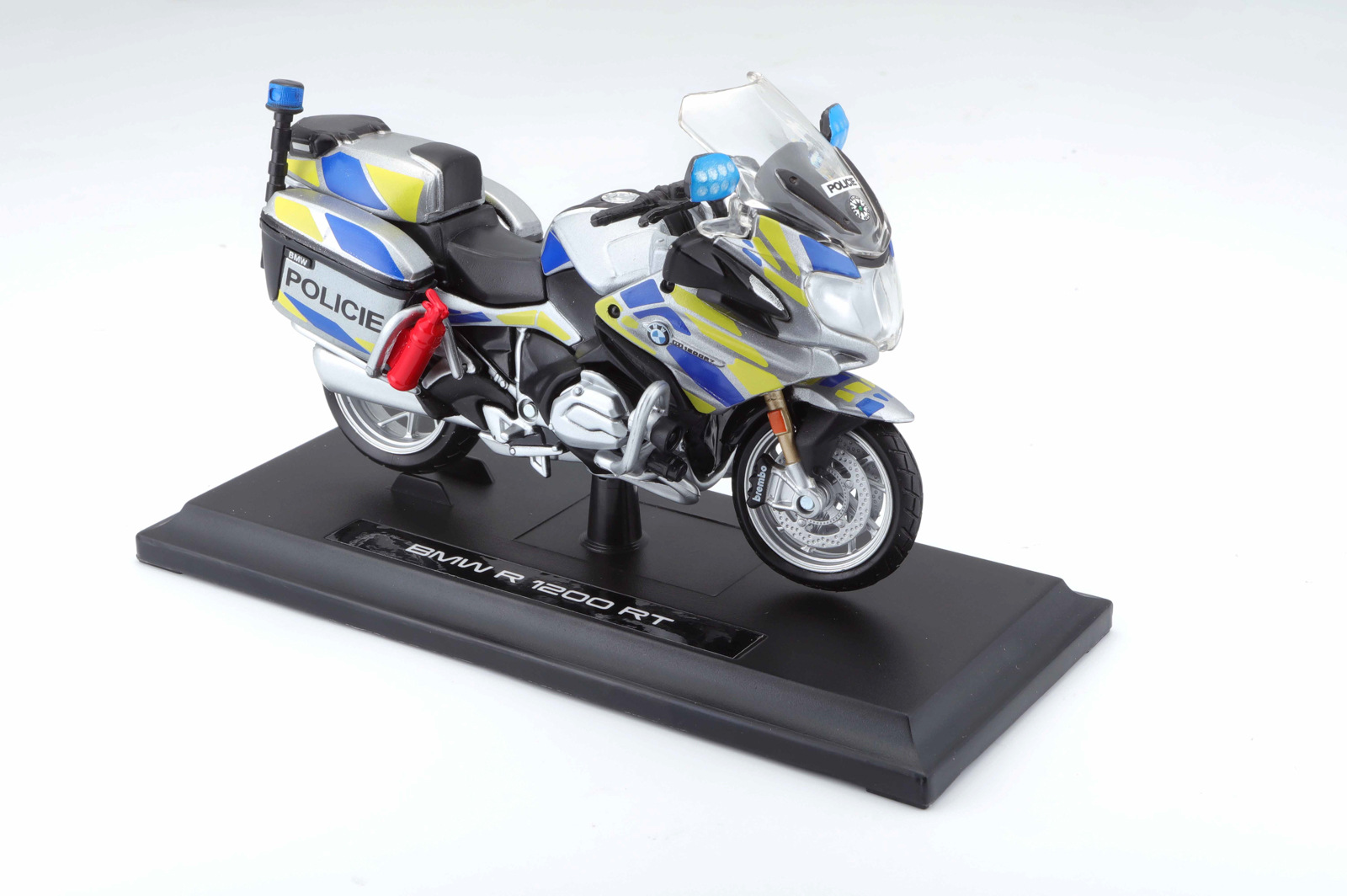 BMW R 1200 RT. Speciální plastikový model motocyklu BMW R 11200 RT vytvořeného přesně podle originálu policejního motocyklu BMW Policie České Republiky. Modely v měřítku 1:18 mají u svých fanoušků velkou oblíbenost pro jejich dokonalé provedení. Motocykl má otáčivá řídítka a odpruženou zadní nápravu. Rozměry balení: 17,8x10,2x7cm. Věk: 3+