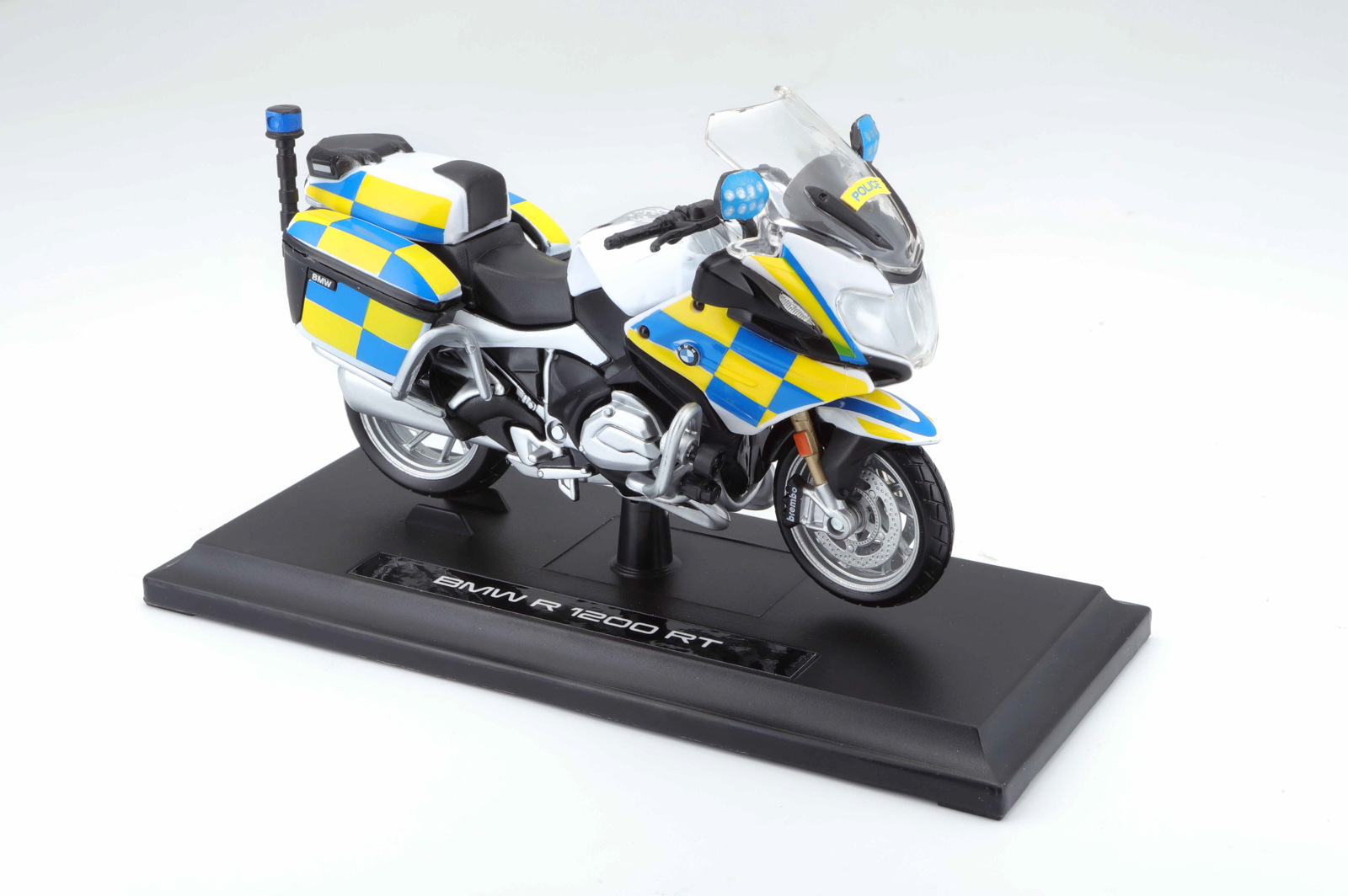 BMW R 1200 RT. Speciální plastikový model motocyklu BMW R11200RT vytvořeného přesně podle originálu policejního motocyklu BMW britské Policie. Modely v měřítku 1:18 mají u svých fanoušků velkou oblíbenost pro jejich dokonalé provedení. Motocykl má otáčivá řídítka a odpruženou zadní nápravu. Rozměry balení: 17,8 x 10,2 x 7cm. Věk: 3+