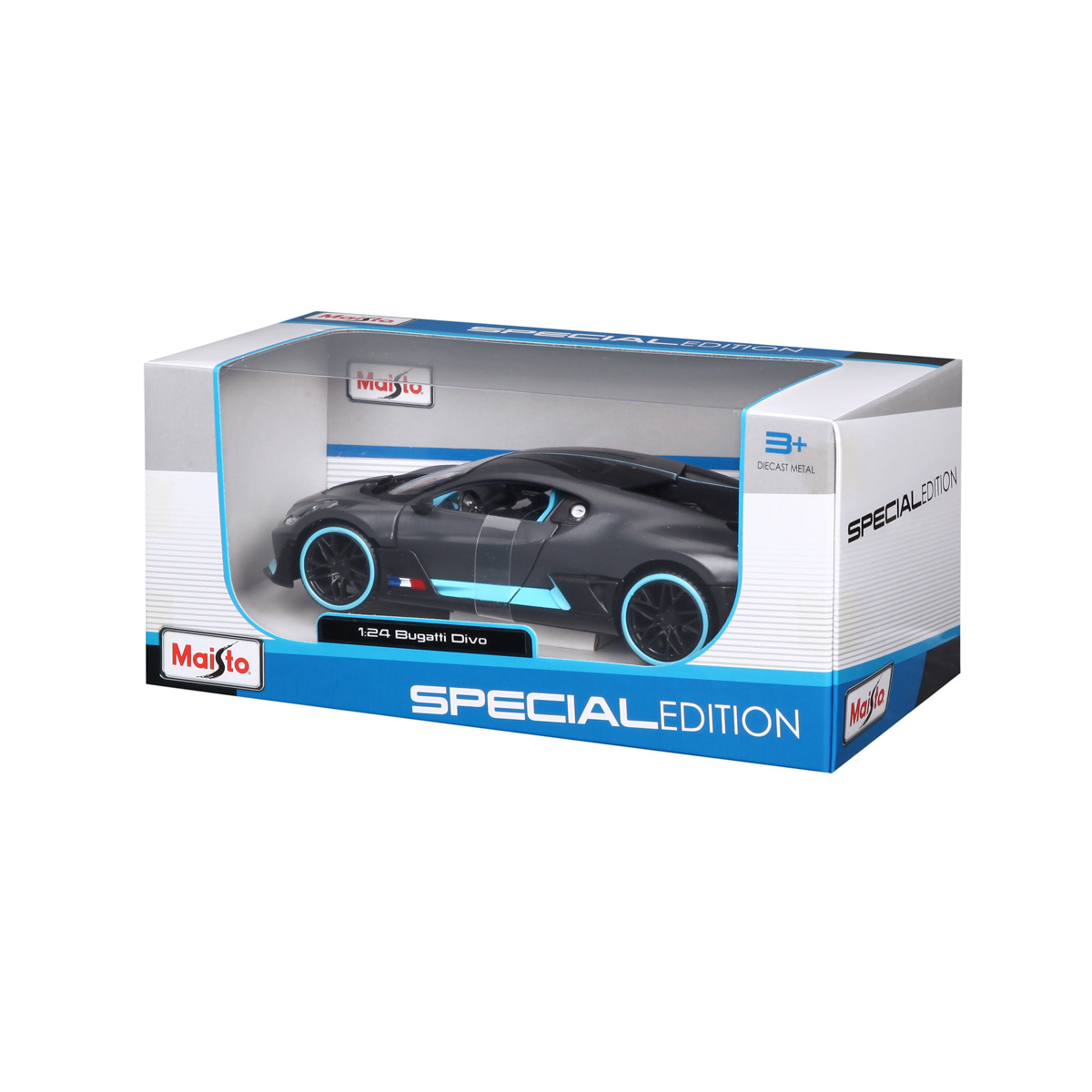 Special Edition 1:24 Bugatti Divo, tmavě šedé. Modely Special Edition jsou sbírkou krásného designu s vysokým důrazem na přesnost detailů. Modely jsou vyrobeny z litého kovu s plastovými detaily. Modely v měřítku 1:24 patří mezi nejoblíbenější. Většina z modelů Special Edition má otevírací dveře, kufr nebo kapotu. Baleno v krabičce. Nevhodné pro děti do 3 let. Rozměry balení: 10,5 x 22,9 x 11,4 cm. Věk 3+
