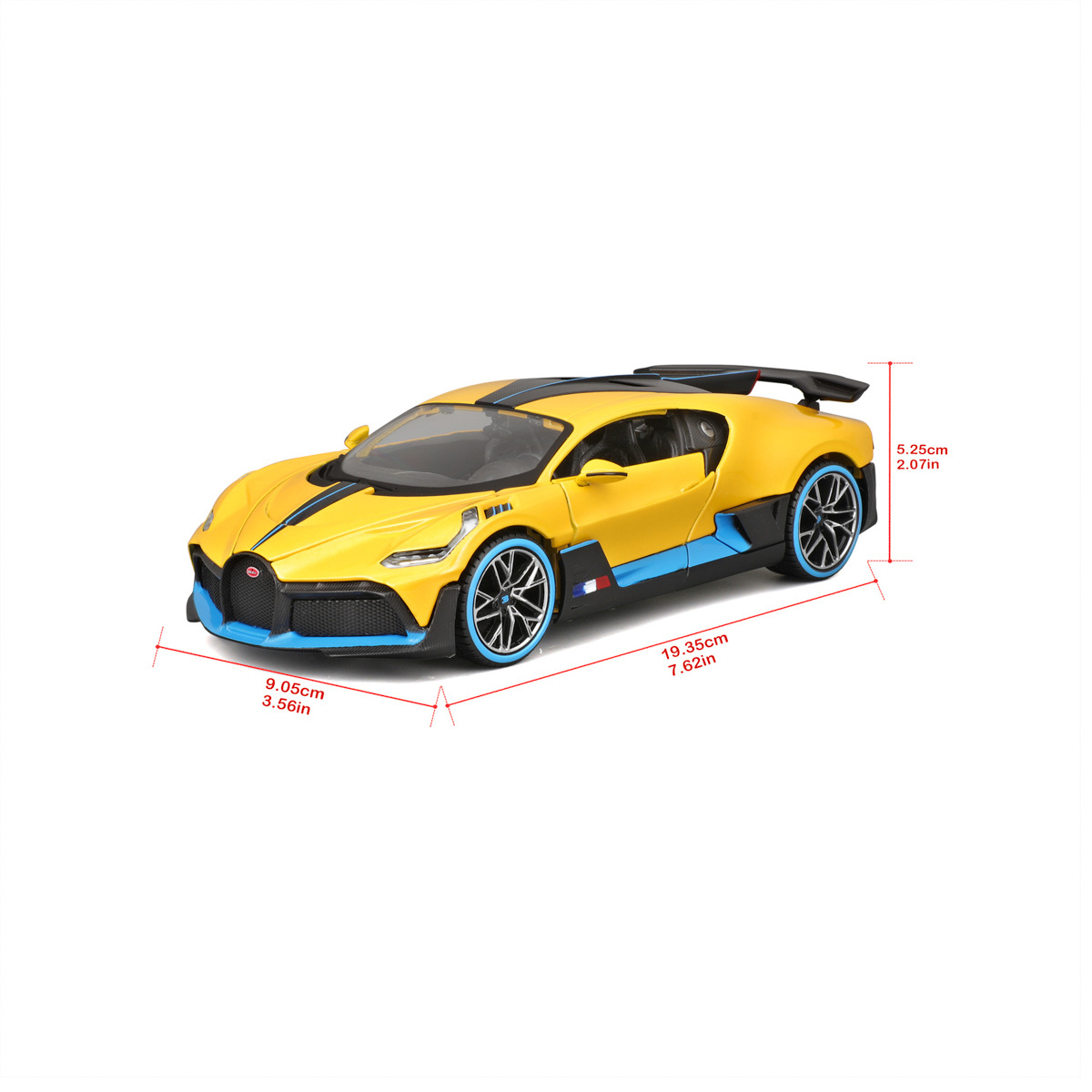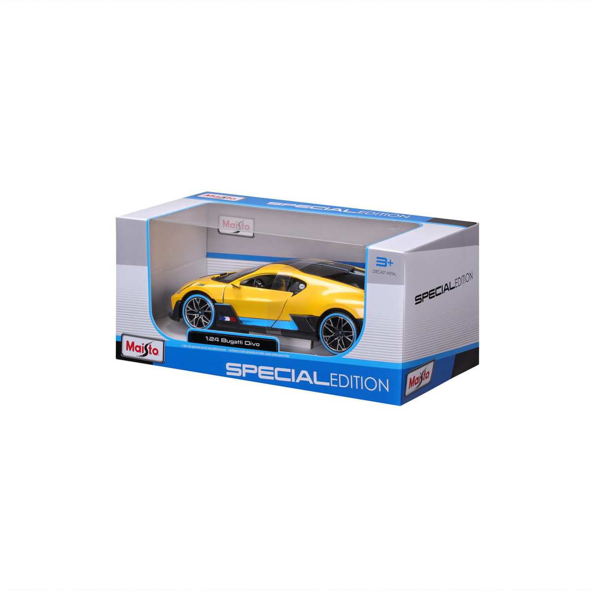 Special Edition 1:24 Bugatti Divo, žluté. Modely Special Edition jsou sbírkou krásného designu s vysokým důrazem na přesnost detailů. Modely jsou vyrobeny z litého kovu s plastovými detaily. Modely v měřítku 1:24 patří mezi nejoblíbenější. Většina z modelů Special Edition má otevírací dveře, kufr nebo kapotu. Baleno v krabičce. Nevhodné pro děti do 3 let. Rozměry balení: 10,5 x 22,9 x 11,4 cm. Věk 3+