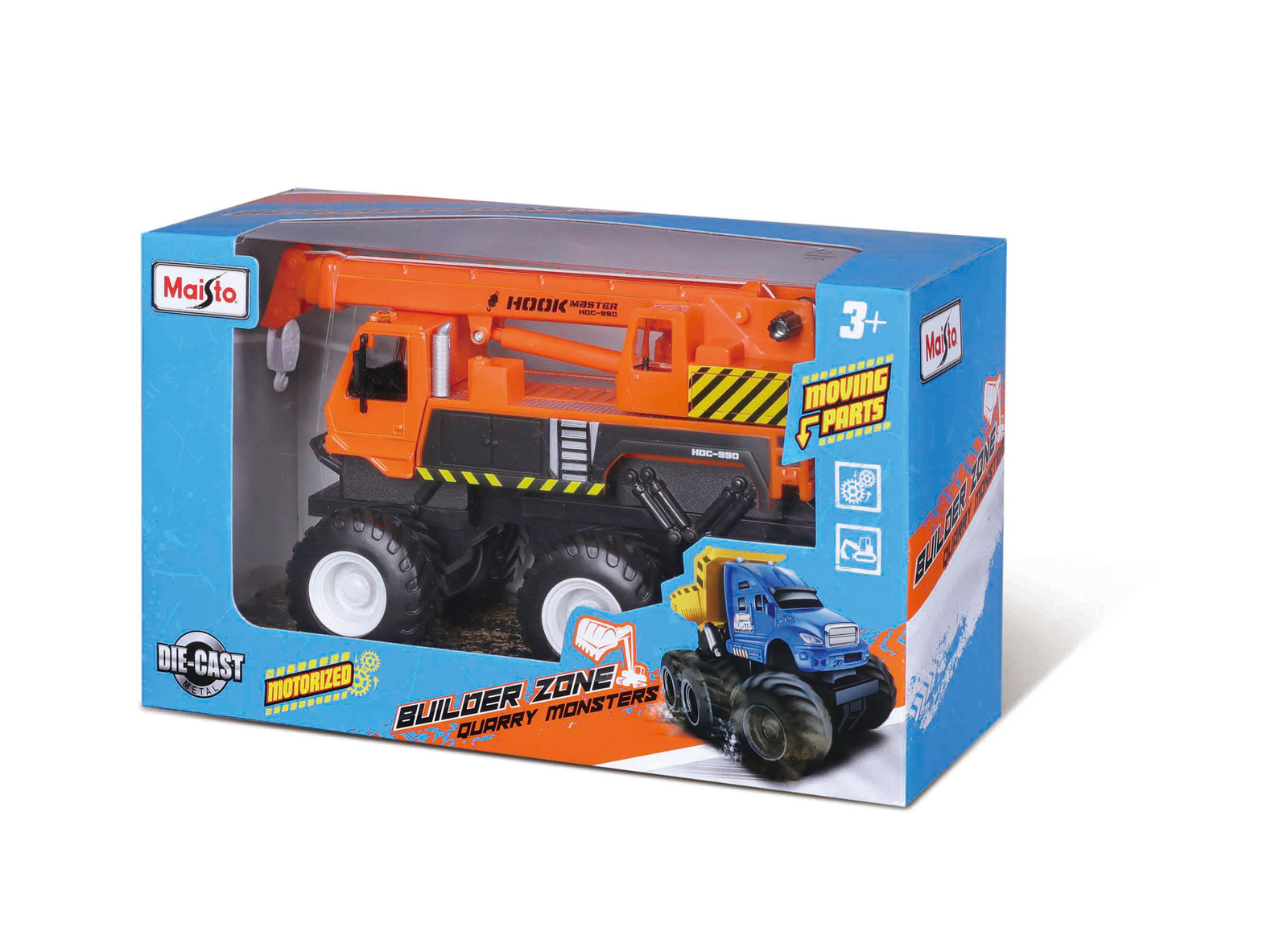 Builder Zone Quarry monsters. Plastikový model užitkového vozu jako monster truck na 6 velkých kolech a s pohonem na setrvačník. Materiál kov s plastovými doplňky a s pohyblivými funkčními částmi. Modely autíček s perfektním propracováním a designem. Rozměry balení: 25,4 x 15,2 x 10,8cm. Věk: 3+