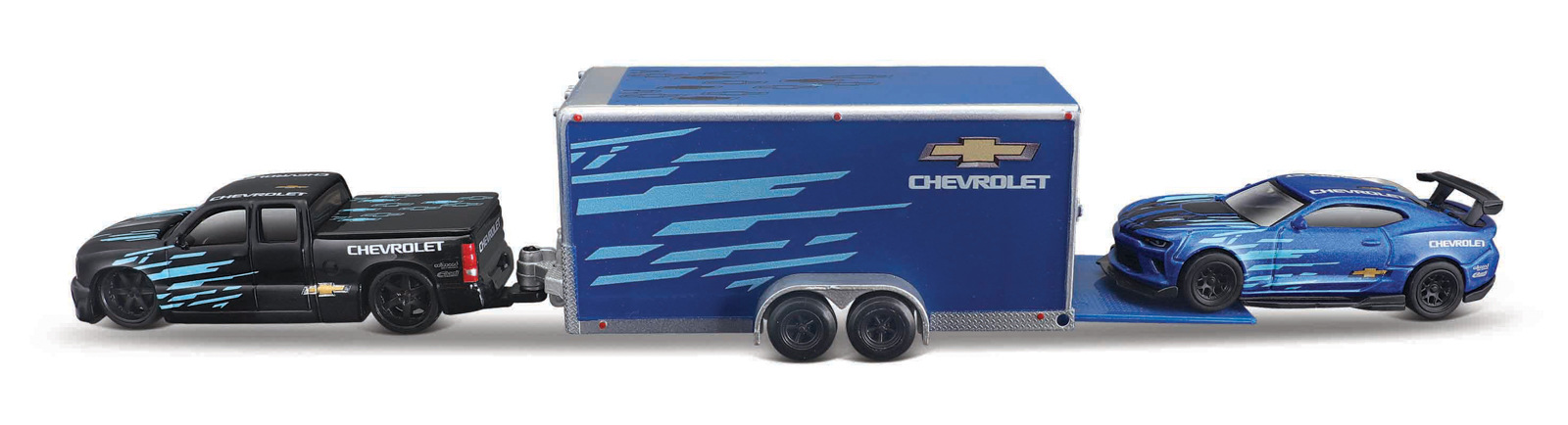1979 Chevrolet KS Blazer + 1968 Chevrolet Camaro Z/28. Kovové auto s vlekem + kovové autíčko v měřítku 1:64. Modely autíček s perfektním propracováním a designem mají kvalitní kovové osy kol. Balení: 29,2x7,3x6cm Věk: 8+
