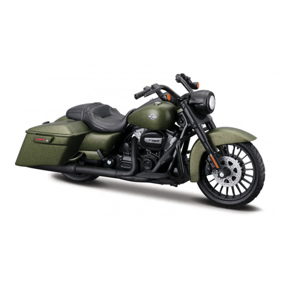 Harley-Davidson Motorcycles 1:18 2022 Road King® Special, zelená metalíza. Model ze série 43 collection v měřítku 1:18 má velmi dokonalé, detailní provedení jednotlivých částí a kvalitní barevné provedení. Kovový model s plastovými doplňky. Model má řiditelnou vidlici, pohyblivý boční stojan. Nevhodné pro děti do 3 let. Rozměry balení: 10,6 x 17,78 x 6,35 cm. Věk: 3+