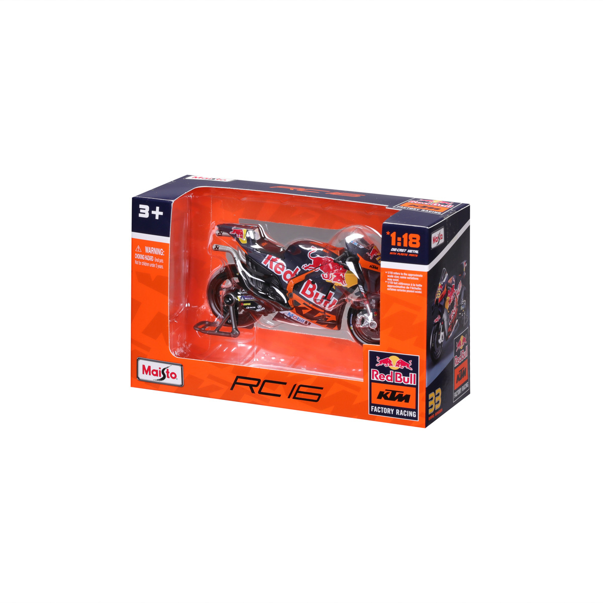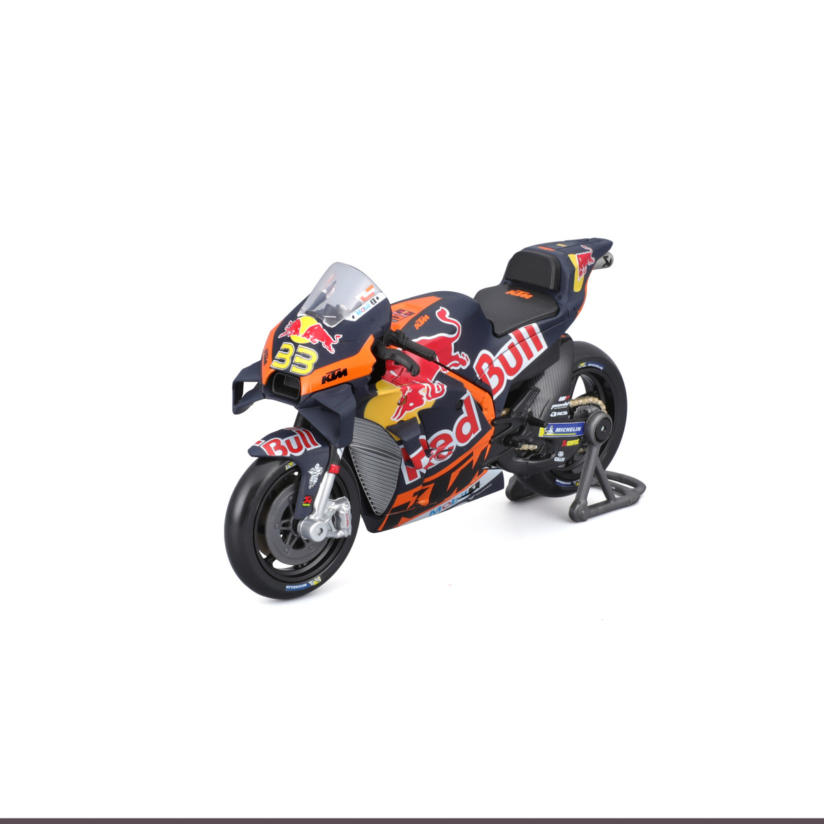 Motocykl GP Racing 1:18 Red Bull KTM Factory Racing 2023, #33 Brad Binder. Model oficiálního licencovaného závodního týmu má velmi dokonalé, detailní provedení jednotlivých částí a kvalitní barevné provedení. Kovový model s plastovými detaily. Model má volně se otáčející kola a je včetně podpěrného stojanu. Baleno v krabičce. Nevhodné pro děti do 3 let. Rozměry balení: 10,5 x 17,1 x 7 cm. Věk: 3 +