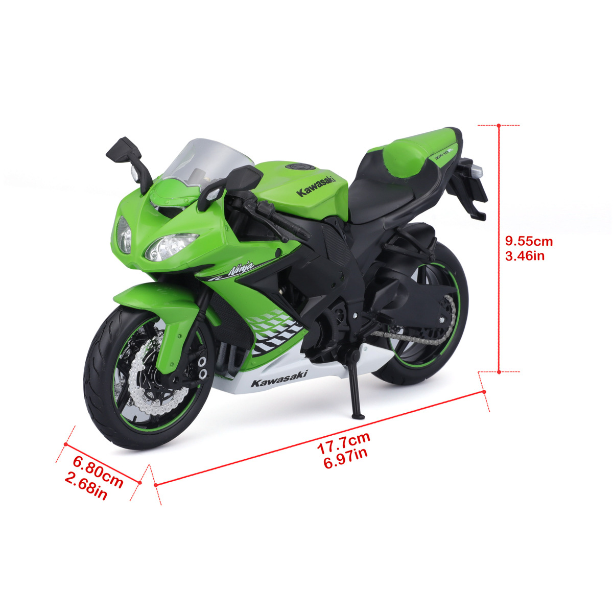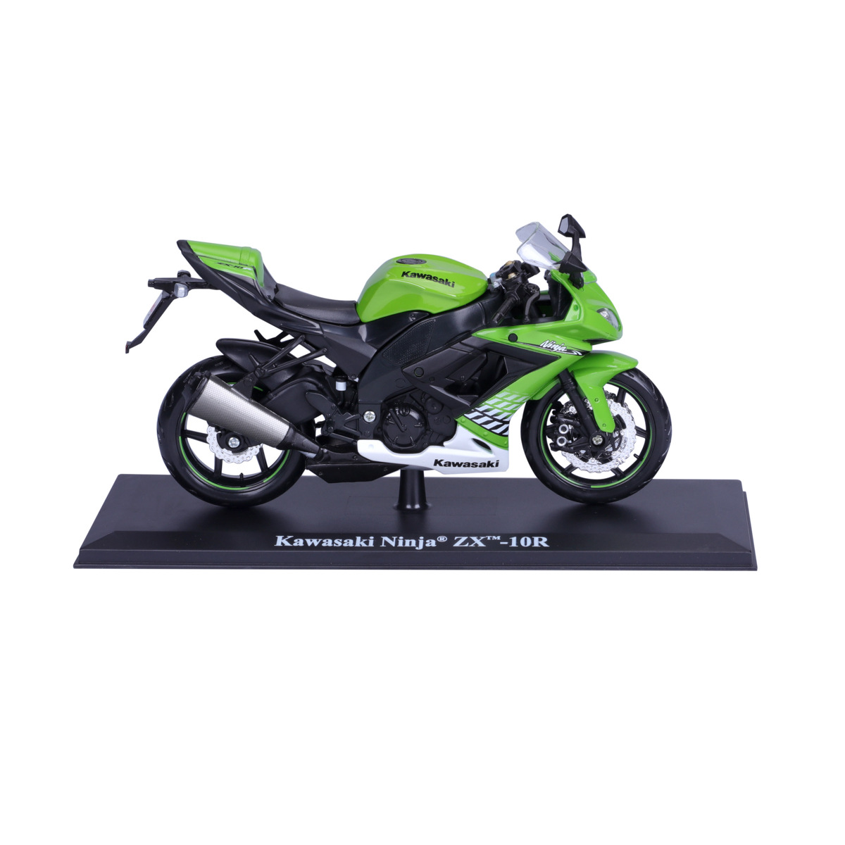 Kawasaki Ninja® ZX™-14R. Kovové modely motocyklů v modelovém měřítku 1:18. Motocykly mají otáčivá řidítka a odpruženou zadní nápravu. Jsou usazeny na černém plastovém podstavci. Rozměry balení: 16x10,5x7cm. Věk: 3+