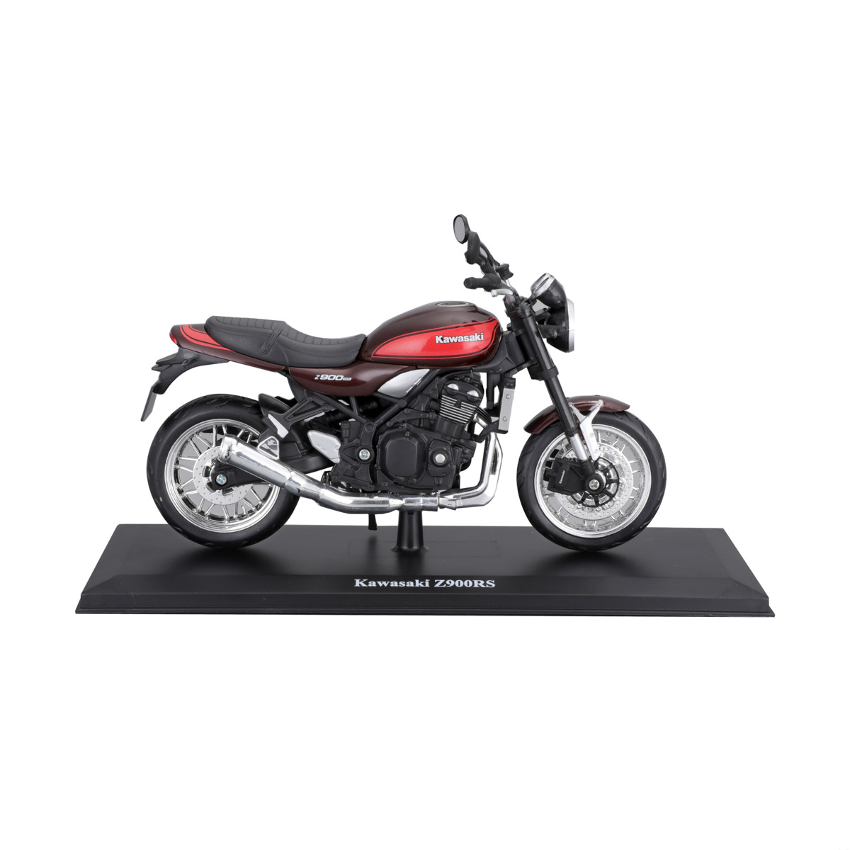 Kawasaki Z900RS CAFE. Modely motocyklů v měřítku 1:12 mají u svých fanoušků velkou oblíbenost pro jejich dokonalé provedení a především velikost cca. 16 cm. Motocykly mají otáčivá řidítka a odpruženou zadní nápravu. Baleno v krabičce. Balení: 21,2x12x7cm. Věk: 3+