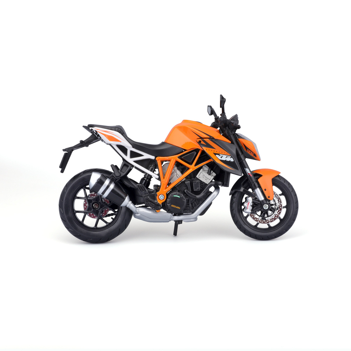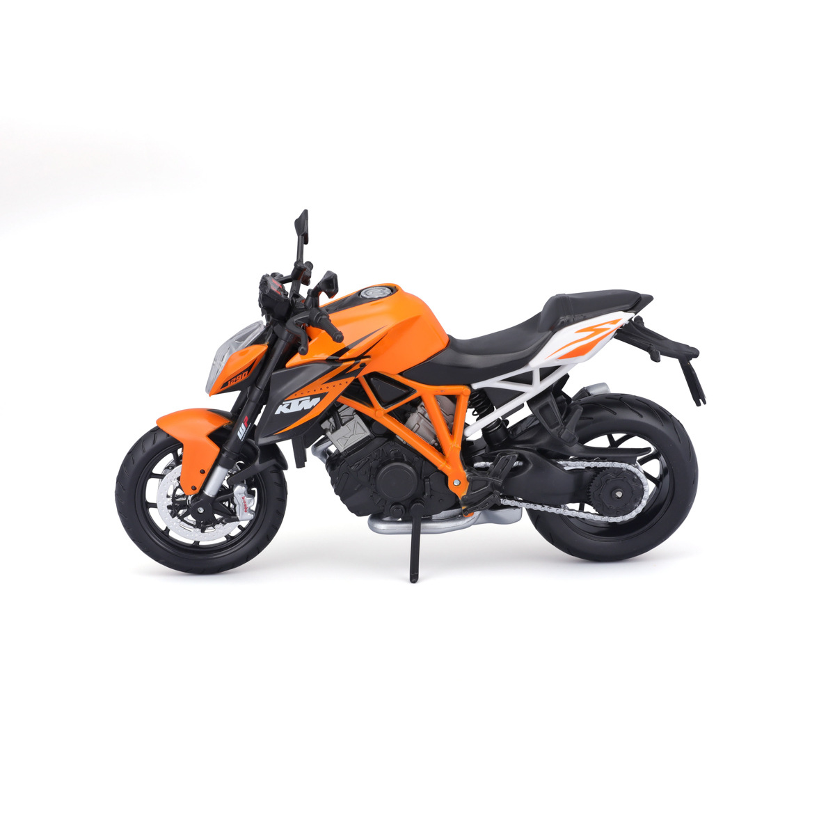 KTM 690 Duke. Kovové modely motocyklů v modelovém měřítku 1:18. Motocykly mají otáčivá řidítka a odpruženou zadní nápravu. Jsou usazeny na černém plastovém podstavci. Rozměry balení: 16x10,5x7cm. Věk: 3+