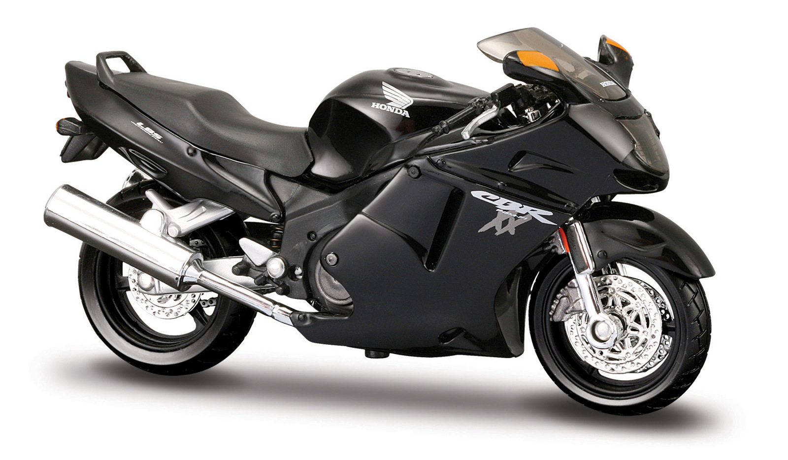 Honda CBR 1100XX. Kovové modely motocyklů v modelovém měřítku 1:18. Motocykly mají otáčivá řidítka a odpruženou zadní nápravu. Jsou usazeny na černém plastovém podstavci. Rozměry balení: 15,7x10,4x6,8cm. Věk: 3+