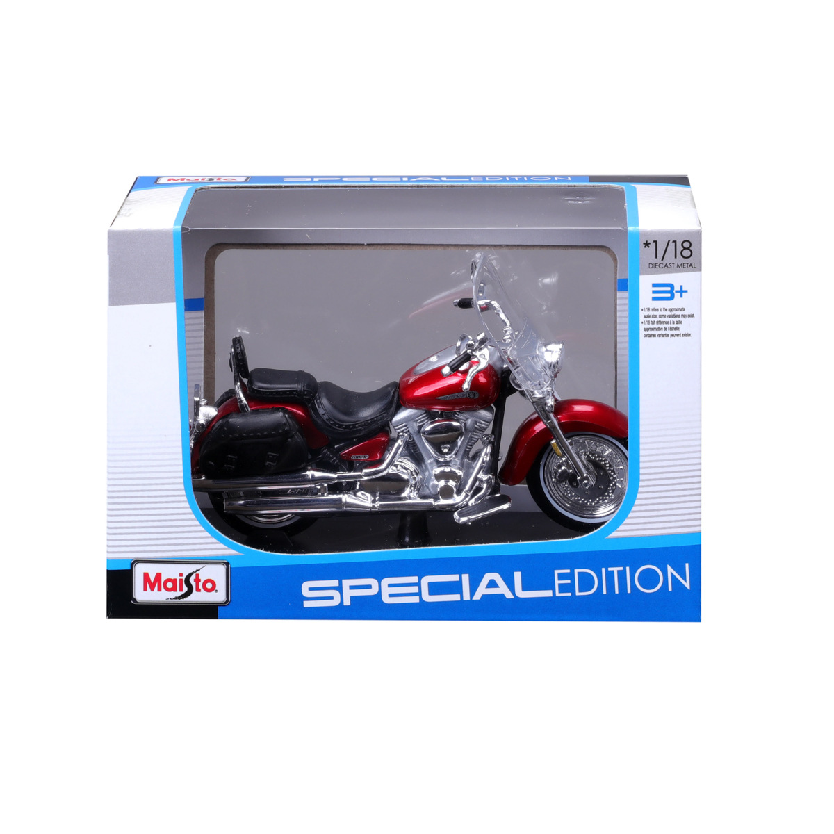 Yamaha Road Star Silverado. Plastikové modely motocyklů v modelovém měřítku 1:18. Motocykly mají otáčivá řidítka a odpruženou zadní nápravu. Jsou usazeny na černém plastovém podstavci. Rozměry balení: 16 x 10,5 x 7cm. Věk: 3+