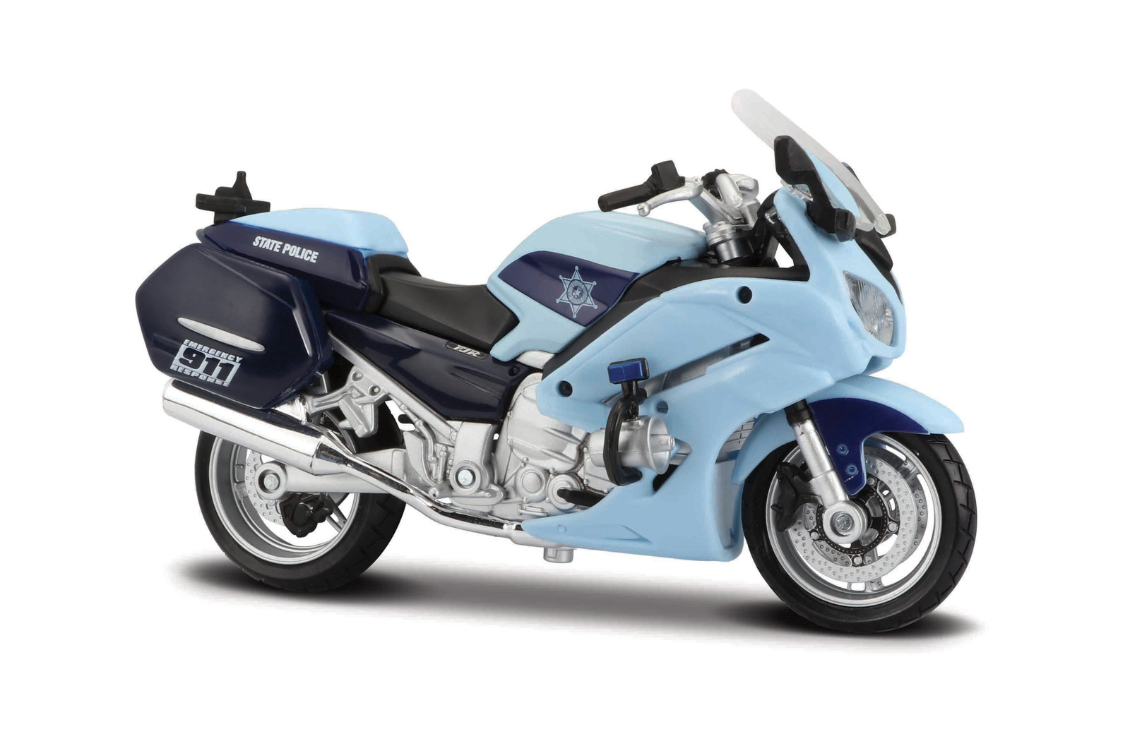 YAMAHA FJR 1300A, US - State Trooper. Model policejního motocyklu. Modely odlévané pod tlakem jsou přesnou replikou originálů a mají volný otočný mechanismus, díky kterému jsou zábavnou hračkou pro děti. Balení: 15,7x10,4x6,8cm. Věk: 3+