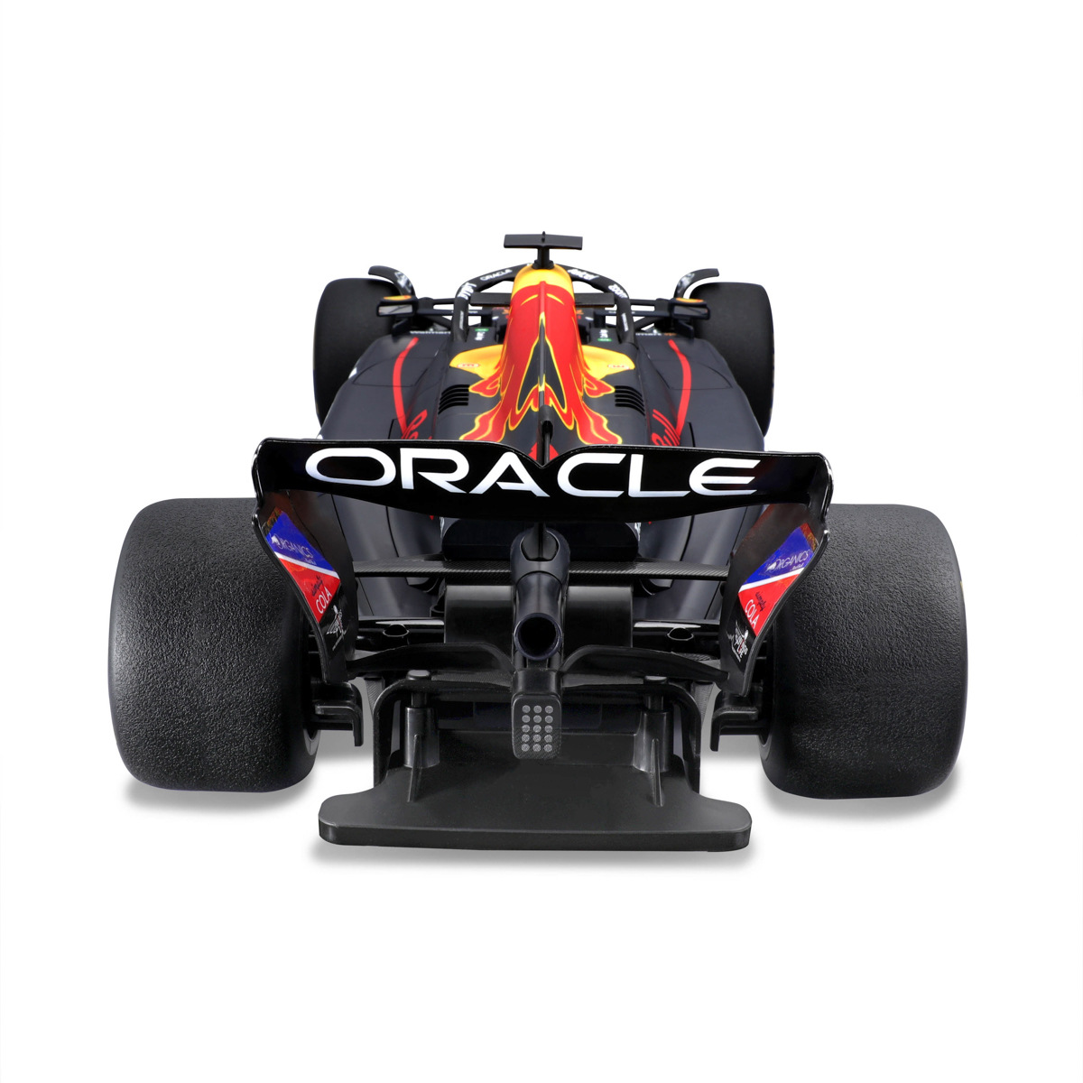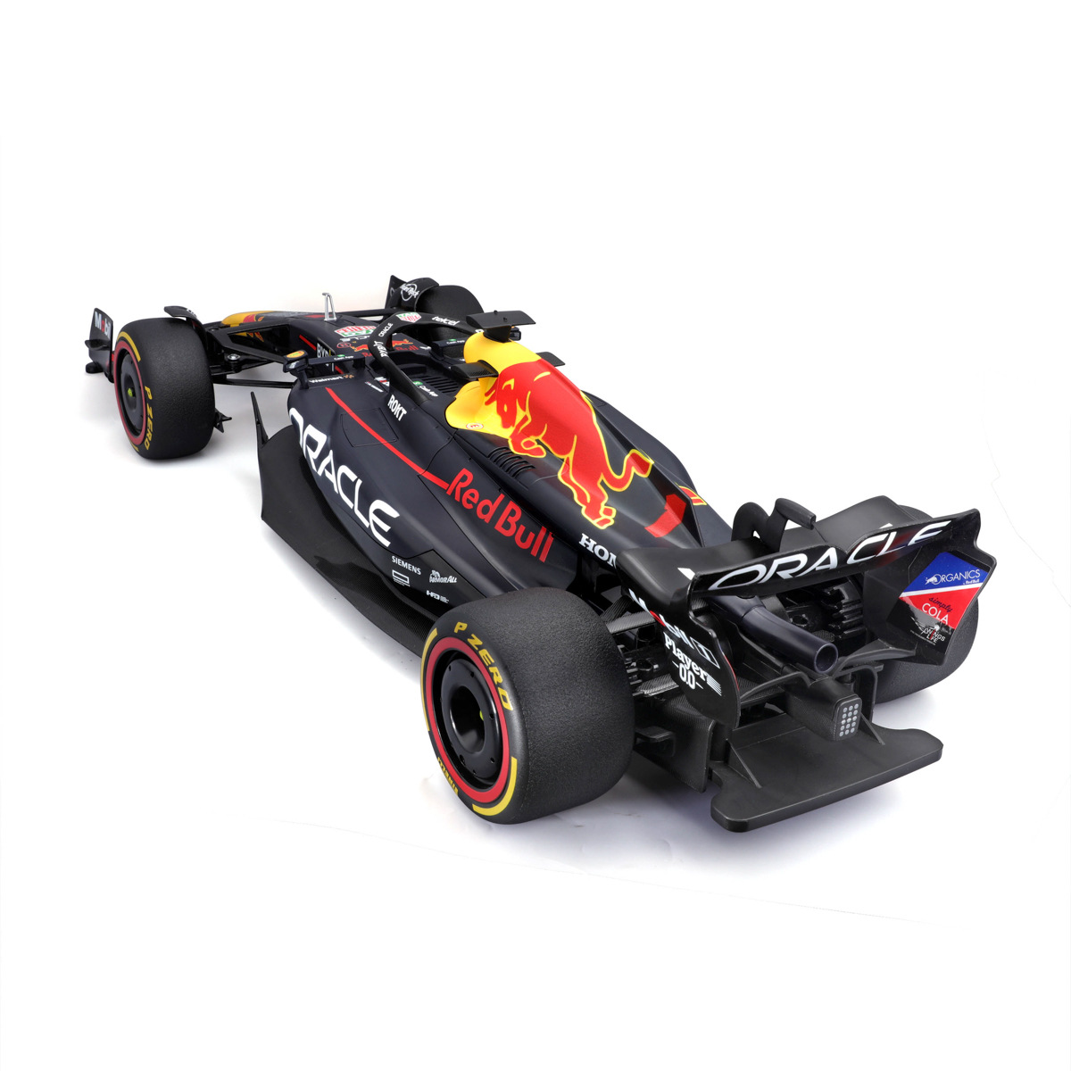 RC model Oracle Red Bull Racing RB19 - #1 Max Verstappen v měřítku 1:10 je precizně zpracovaná replika, která zachycuje elegantní aerodynamický design a odvážnou barvu soutěžního vozu formule Red Bull Racing 2023. Je zkonstruován pro rychlost a obratnost a nabízí nadšencům strhující závodní zážitek, který zahrnuje autentické zvuky motoru RB19. Přibližně 57 cm dlouhý. Autentické zvuky Red Bull RB19. 2,4 GHz pro špičkový výkon. Až 4 hráči mohou řídit v jednom okamžiku a na jednom místě. Dosah ovládání 35 metrů. Ovladač v profesionálním stylu s proporcionálním ovládáním rychlosti. Nastavení seřízení řízení. Vozidlo využívá lithiovou dobíjecí baterii (je součástí balení). Nabíjecí kabel USB (součástí dodávky). Nabíjení baterie trvá přibližně 2,5 hodiny. Ovladač funguje na 2 baterie AA (jsou součástí). Baleno v krabičce. Rozměry auta: 20,39 x 12,19 x 57,14 cm. Rozměr balení: 21,6 x 67,3 x 24,5 cm. Věk: 8+