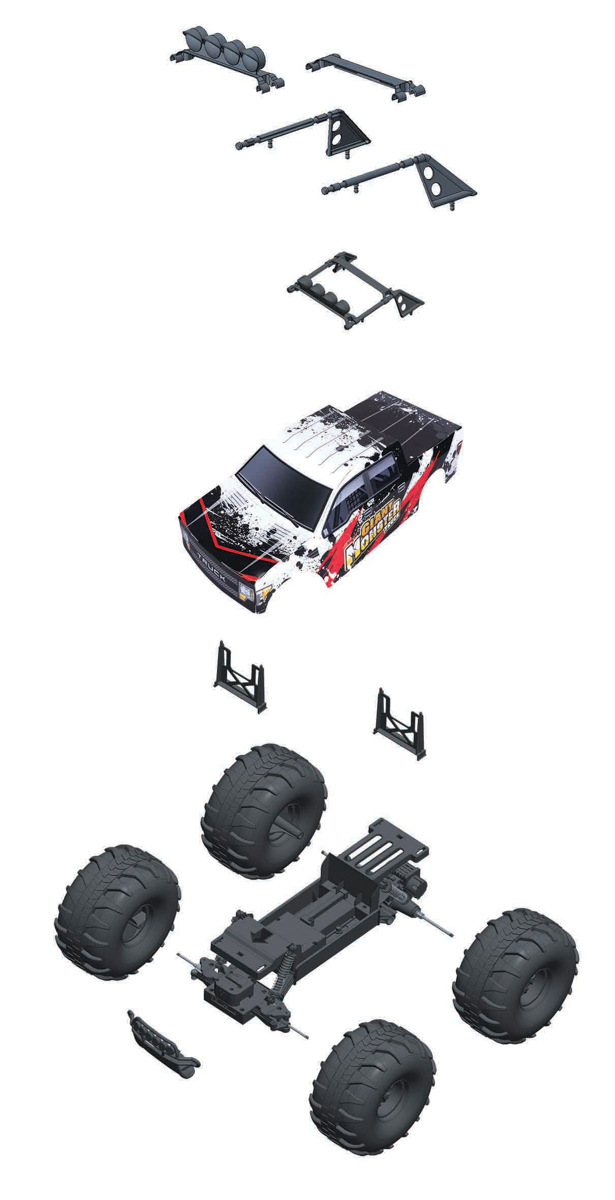 RC Rock Bouncer. Plastový model značky Maisto na dálkové ovládání. Auto má dokonalou konstrukci a skvělé vlastnosti při jízdě v terénu. Dosah ovládání až 35 m. Možnost ovládaní díky 2,4 GHz až pro 4 osoby. Nastavení vyrovnání řízení. Auto funguje na 4x AA baterie a ovladač na 2x AAA baterie (nejsou součástí balení). Rozměr balení: 13,9 x 28 x 15,25 cm. Věk 6+