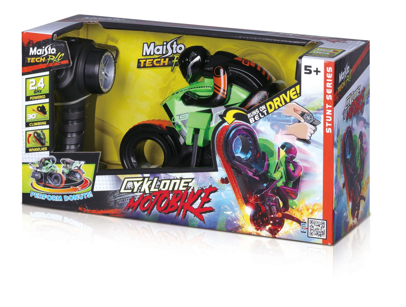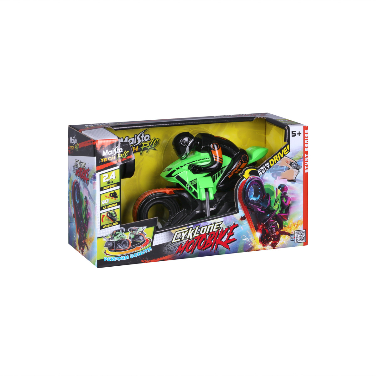 7" Motocykl Cyklone, zelená barva. Plastový model značky Maisto na dálkové ovládání. Motocykl se speciálním designem kol pro skvělý zážitek z jízdy. Motocykl funguje na 4x AAA baterie (nejsou součástí). Ovladač má dosah až 35 metrů a používá 2x AAA baterie (nejsou součástí). Rozměr balení: 27,94x15,24x11,43 cm. Věk 5+