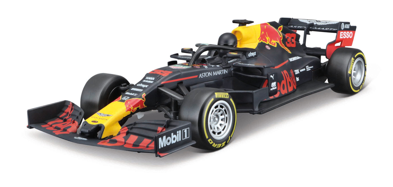 Red Bull RB15 (2019). Model závodní formule na dálkové ovládání od značky Maisto. Model je v měřítku 1:24. Vestavěná lithiová baterie, která se dobíjí pomocí přiloženého USB kabelu. Ovladač je na 2xAAA baterie, které jsou součástí balení. Dosah ovladače až 35m. Doba nabíjení 45 minut. Rozměry balení: 29,2x12x15,2cm. Věk: 8+