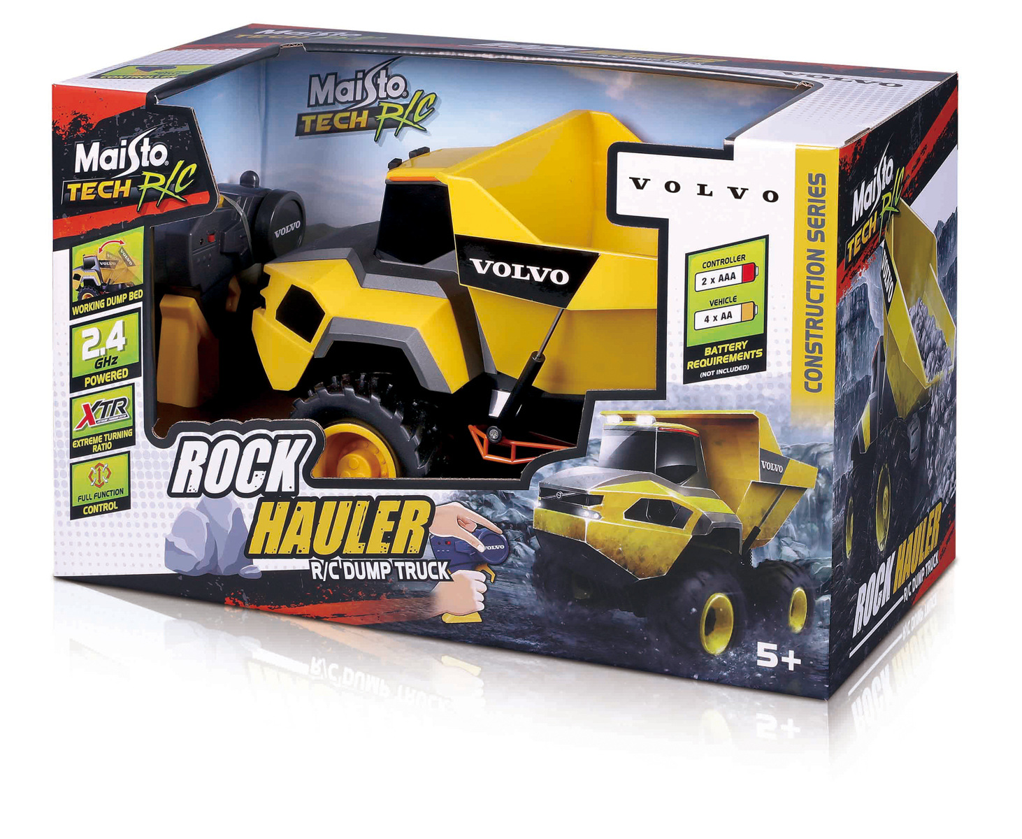 Volvo A25 Hauler. Model obrovského lomového nakladače na dálkové ovládání od značky Maisto. Korbu s nákladem lze pohodlně vyložit díky funkčnímu vyklápění. Auto potřebuje pro svůj provoz 4xAA baterii (nejsou součástí). Ovladač funguje na 2x AAA baterii(nejsou součástí). Dosah ovladače až 35m. Balení: 41,3x25,4x20,3cm. Věk: 5+