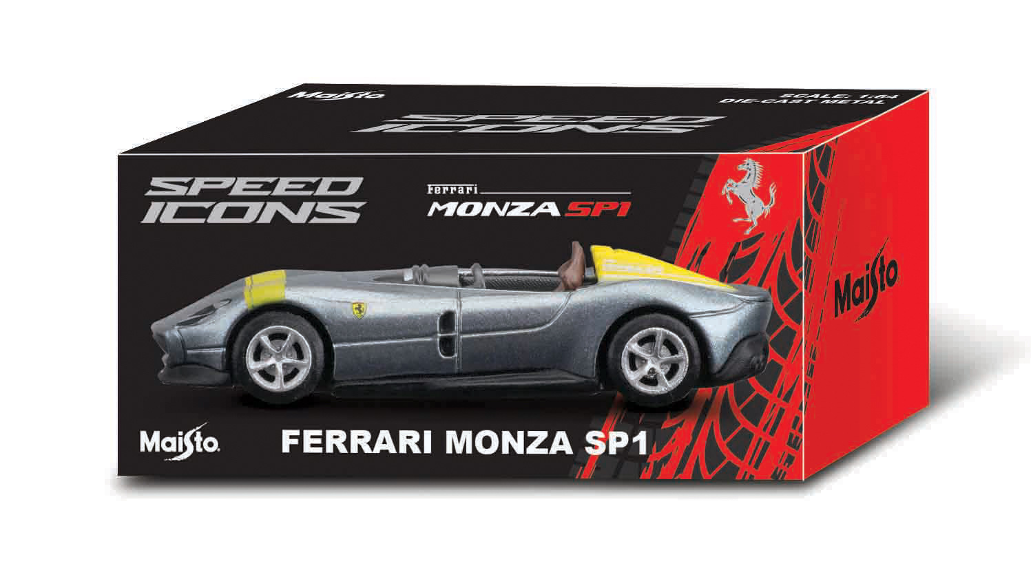 Speed Icons 1:64 Ferrari Monza SP1 stříbrno-žluté. Modely Speed Icons jsou sbírkou těch nejzajímavějších, nejúžasnějších a nejvýkonnějších vozidel, která svět nabízí. Od super vozů za vysoké ceny až po nejšílenější, nadmíru výkonná moderní auta. Nová úroveň designu a pozornost věnovaná detailům jako žádná jiná. Karoserie i podvozek jsou vyrobeny z litého kovu. Model v měřítku 1:64 má otevírací dveře kufru, dvoudílná kola s odpružením a pneumatikami ze skutečné pryže. Baleno v prémiovém úložném boxu. Nevhodné pro děti do 3 let. Rozměry balení: 17,8 x 14 x 5 cm. Doporučený věk 8 +