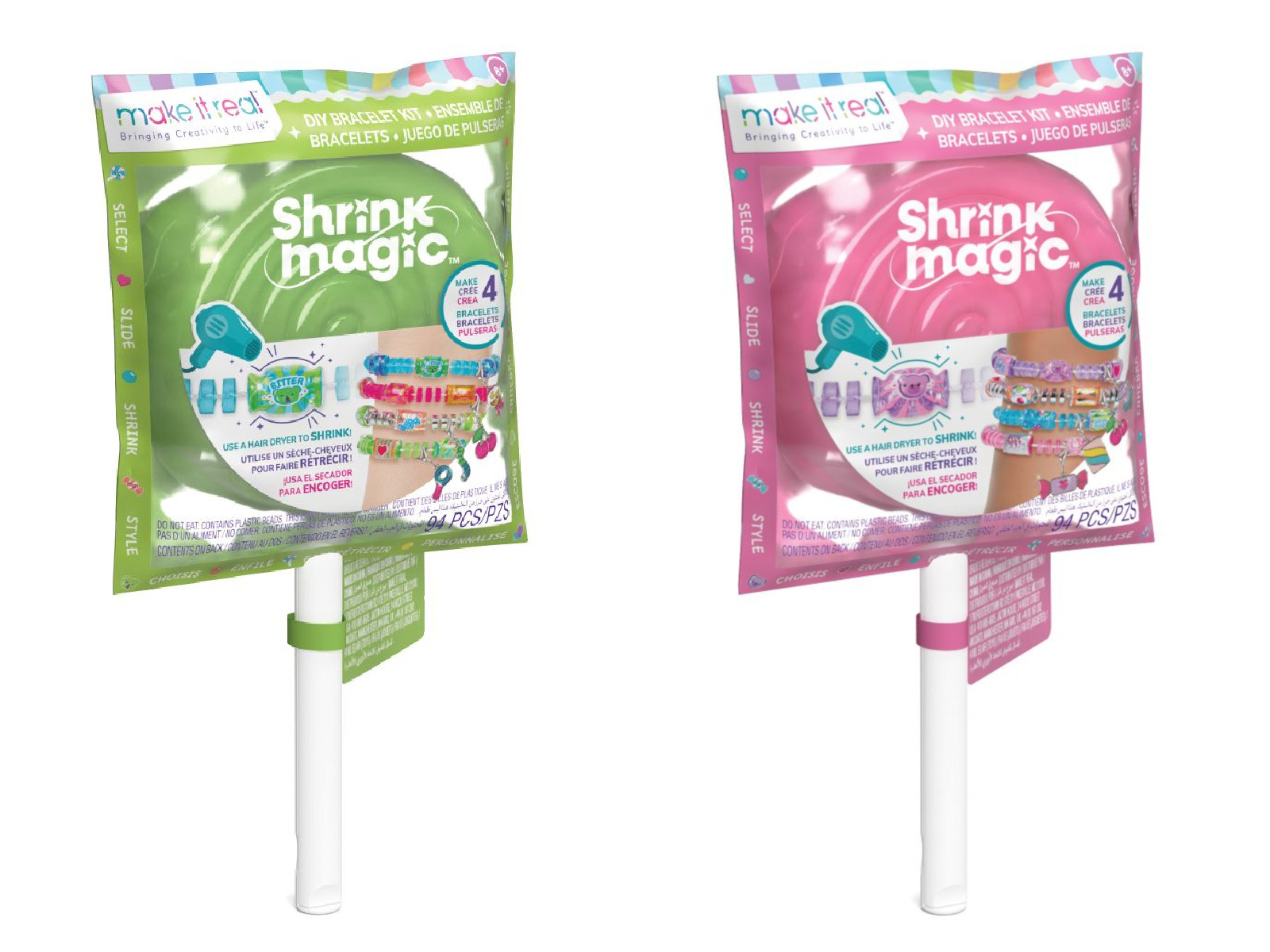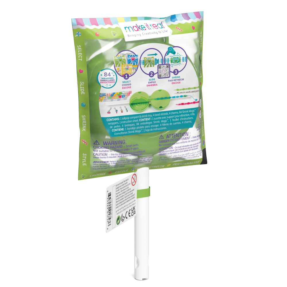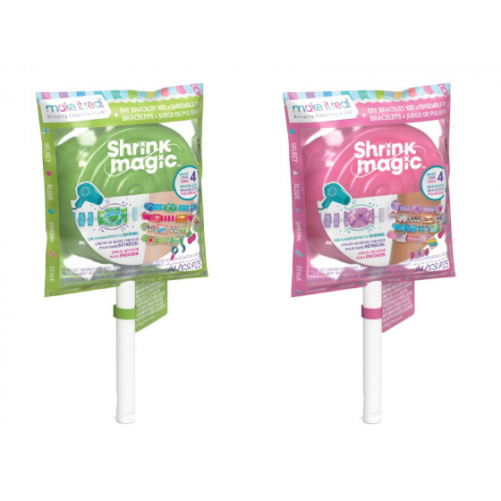 Kouzelné lízátko Shrink je místo, kde se nosí pamlsky, ale tady je kouzlo ve smršťovačce! Vytvořte si sladké a barevné doplňky! Vyberte náramek, poté vyberte obaly s designem cukroví a nandej je na korálky. Snadno aplikujte teplo pomocí fénu (není součástí dodávky) a sledujte, jak se děje kouzlo! Vyrobte si 4 náramky a snadno si je osvěžte různými obaly pro nový vzhled! Tato sada je perfektním dárkem pro holky, které hledají nové způsoby, jak být kreativní a vyjádřit svůj jedinečný styl, bez ohledu na příležitost. Sada obsahuje úložný box ve tvaru lízátka, 4 korálkové náramky, 4 přívěšky, 84 druhů smršťovací fólie a instrukce. Vhodné pro děti od 8 let.