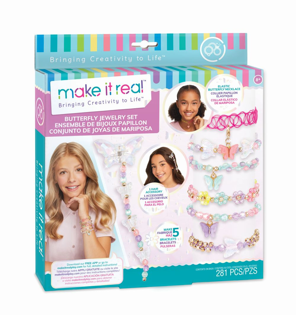 Vyrobte si 3 náramky a 2 náhrdelníky včetně super trendy elastického náhrdelníku ve stylu chocker. Sada obsahuje čirou elastickou šňůrku (4 m), 2 barevné šňůrky (2 m), 271 třpytivých korálků, 3 přívěšky a 1 klip do vlasů ve tvaru motýlka. Baleno v krabici. Vhodné pro děti od 8 let.
