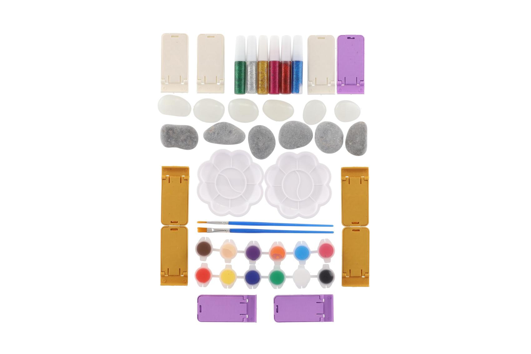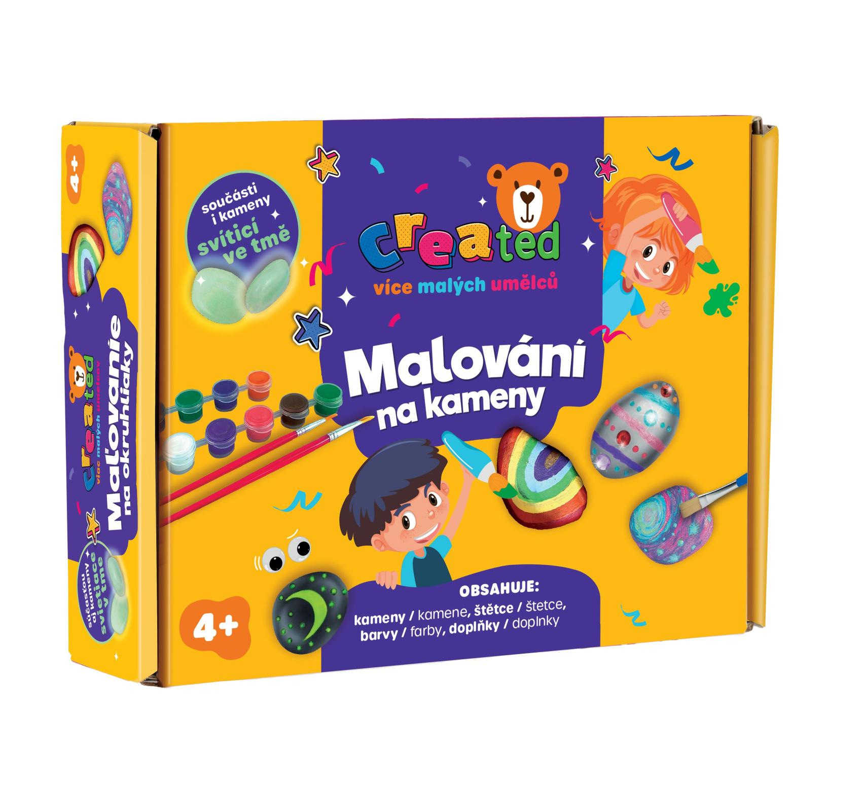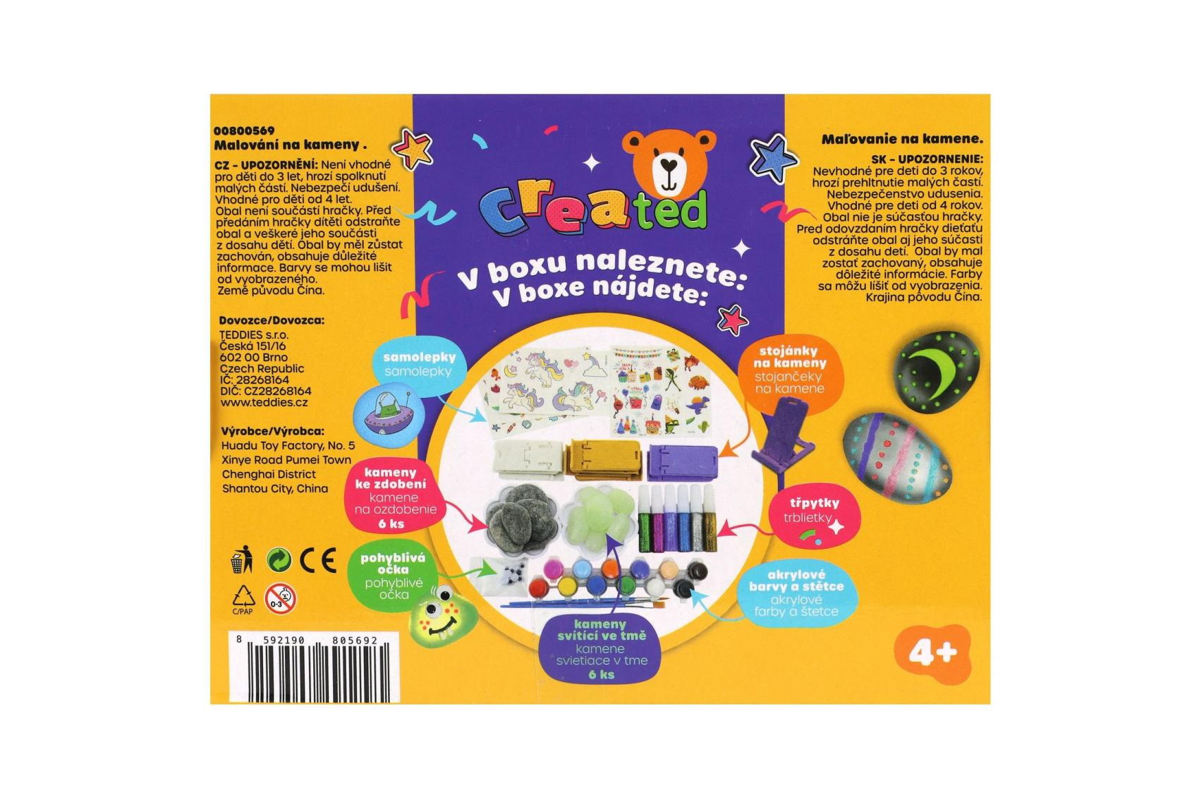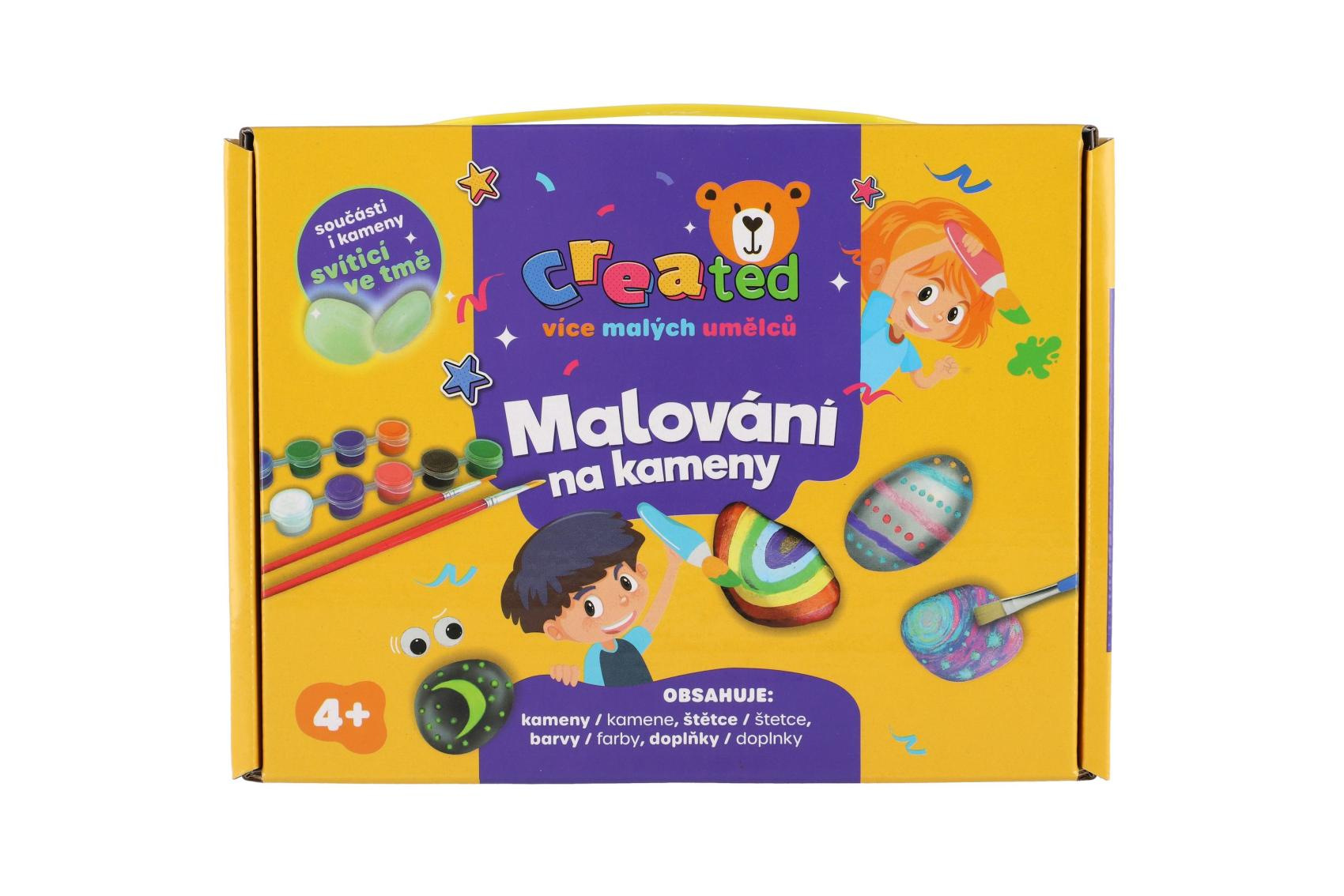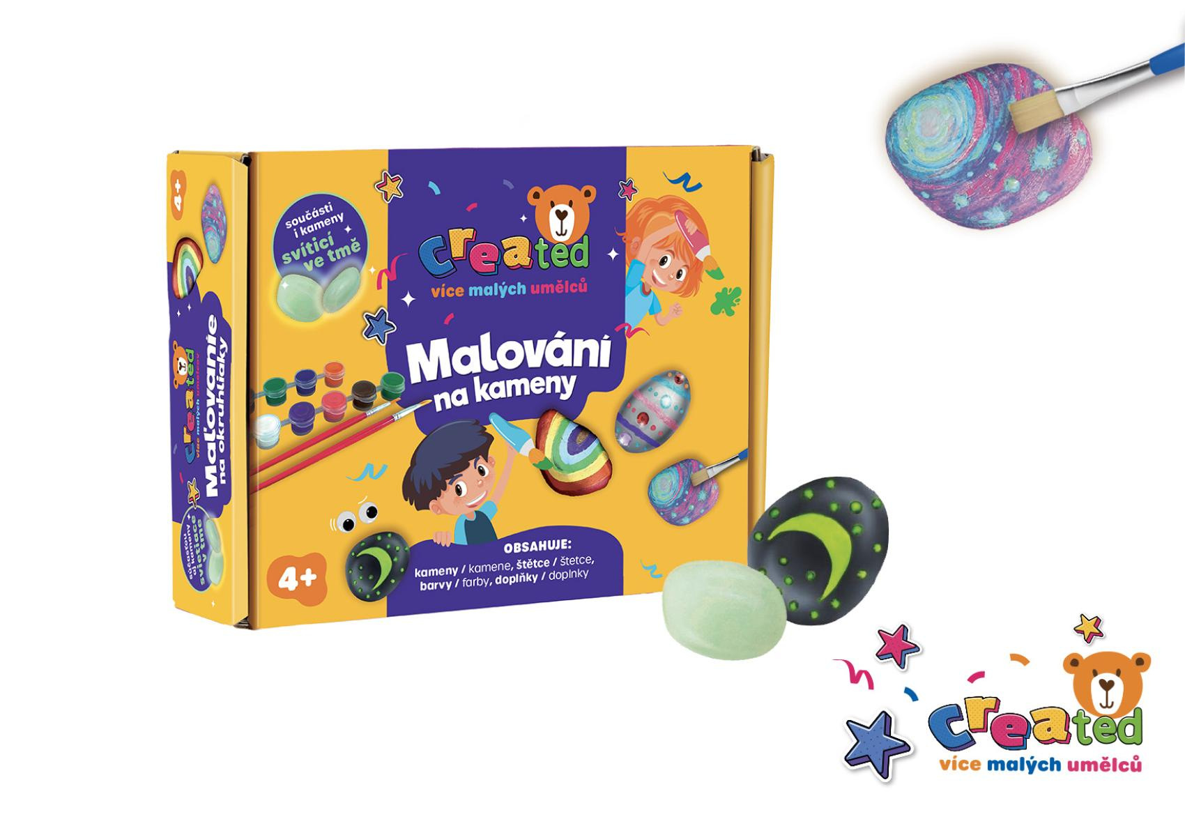 Malování na kameny/oblázky svítící ve tmě s barvami se štětci created s doplňky v krabičce 19x14x5cm