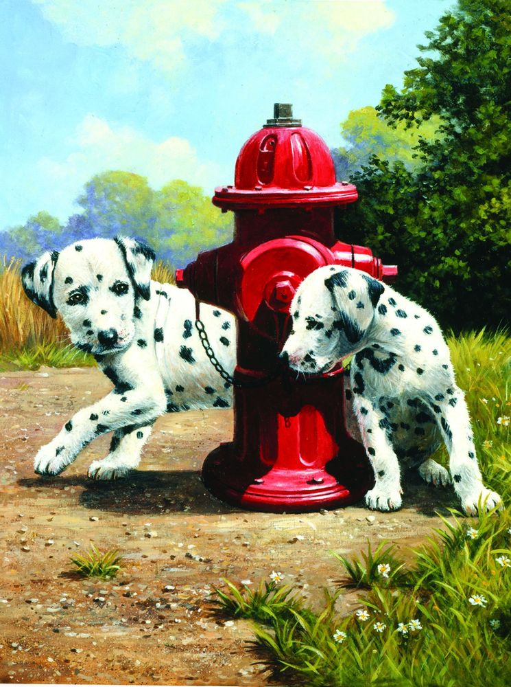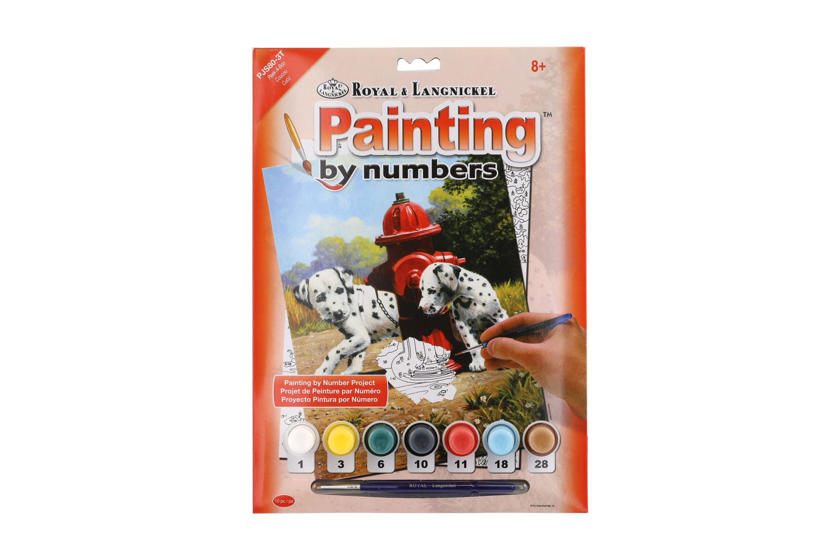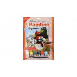 SMT Creatoys Malování podle čísel Dalmatini u červeného hydrantu 22x30cm s akrylovými barvami a štětcem na kartě