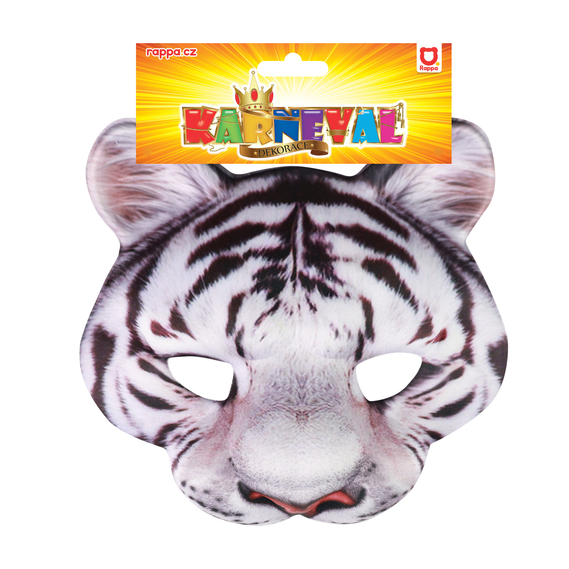 Senzační maska na obličej s motivem bílého tygra. Maska drží na gumičku, která je k masce připevněna. Staň se hvězdou večírku díky této senzační masce a ohrom všechny své kamarády!