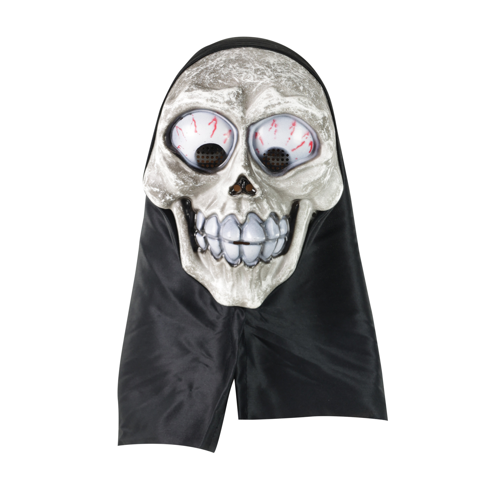 Děsivá maska na obličej s motivem kostlivce je parádním doplňkem na karnevalový večírek čarodějnic nebo Halloween párty. Plastová maska je doplněna textilním šátkem přes hlavu.