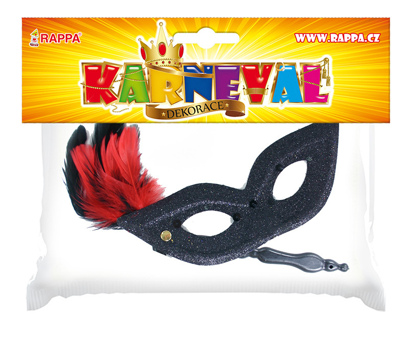 Elegantní škraboška se zlatým držátkem je zdobena hebkým peřím, oslnivými třpytkami a flitry. Staň se tajuplnou hvězdou karnevalového večírku díky této úchvatné škrabošce a ohrom tak všechny své přátele!