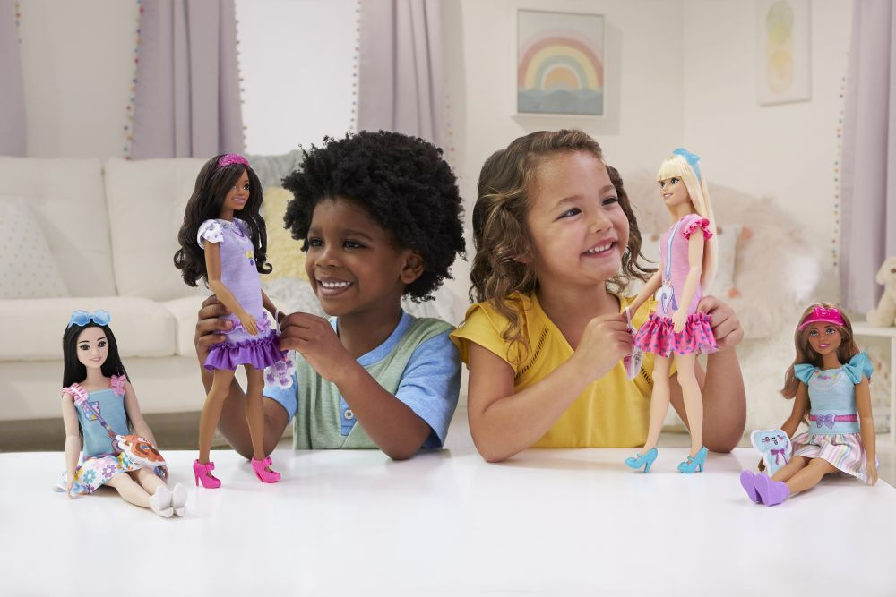 Moje první Barbie® panenky potěší děti roztomilým obličejem a dlouhými vlasy. Jsou vyrobeny v měřítku 34 cm, mají na sobě pestrobarevný obleček, ladící botky a doplňky a malé plyšové zvířátko. Panenky i oblečky jsou uzpůsobené pro malé dětské ručky. Každá se prodává samostatně, podle dostupnosti. Panenky nemohou stát samostatně.