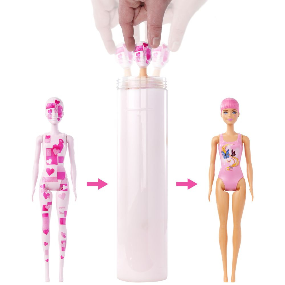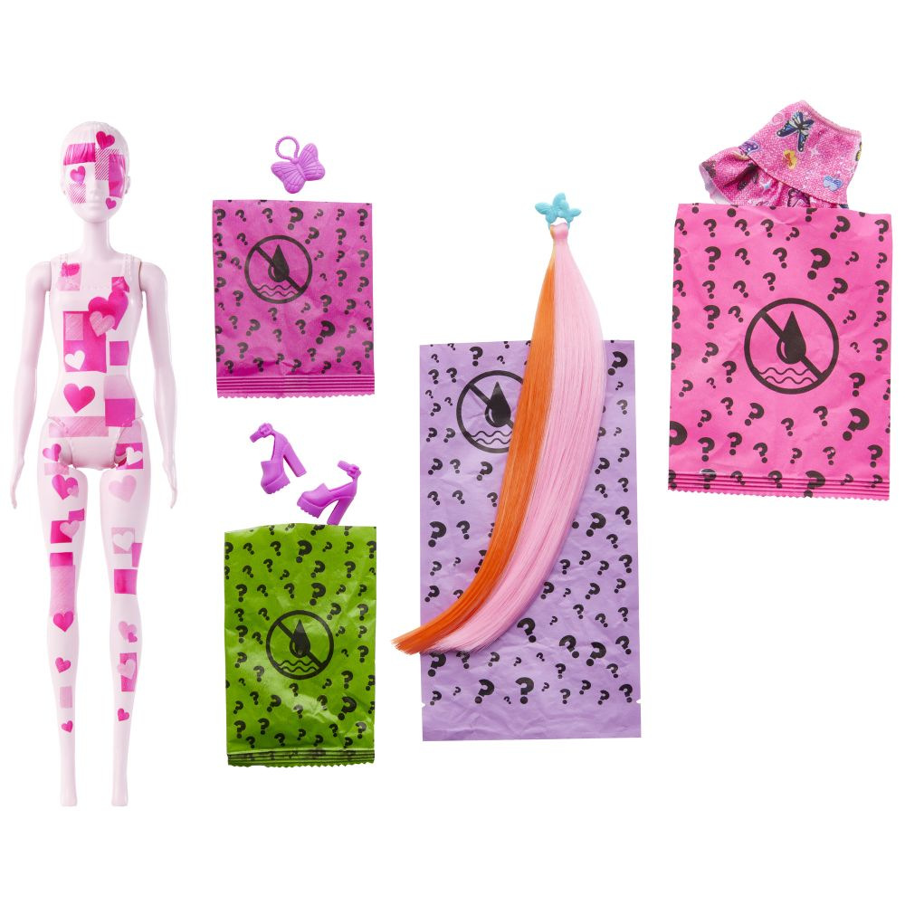 Panenky Barbie® Color Reveal™ Totální denim potěší děti džínovým motivem a překvapeními při rozbalování, která zahrnují panenku Barbie®, stylové módní doplňky, připojitelné culíky a hru se změnou barev. Součástí zábavy je i obal - zatažením za proužek odstraníte vnější vrstvu a odhalíte průhlednou tubu. Uvnitř se nachází panenka Color Reveal™ Barbie®, jejíž celý vzhled se skrývá za barevným potahem. Panenku vyjměte a naplňte tubu teplou vodou, poté vložte panenku a roztočte ji. Když panenku vytáhnete, odhalí se její vzhled! A překvapení pokračují... Otevřete sáčky a objevte spoustu módních doplňků! Kterou panenku odhalíte? Děti je mohou sbírat a kombinovat doplňky a rozšiřovat tak možnosti hraní a vyprávění příběhů! Každá se prodává samostatně v závislosti na dostupnosti. Panenky nemohou stát samostatně. Barvy a provedení dekorací se mohou lišit.