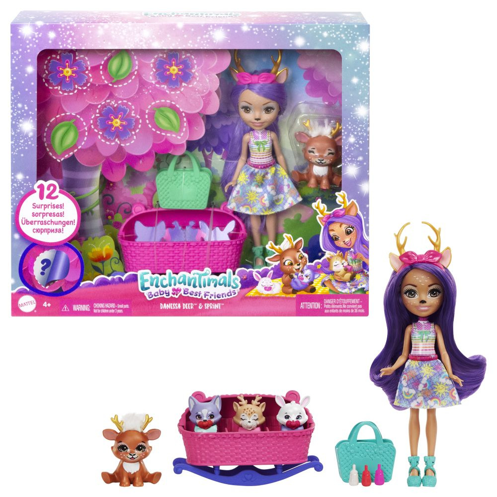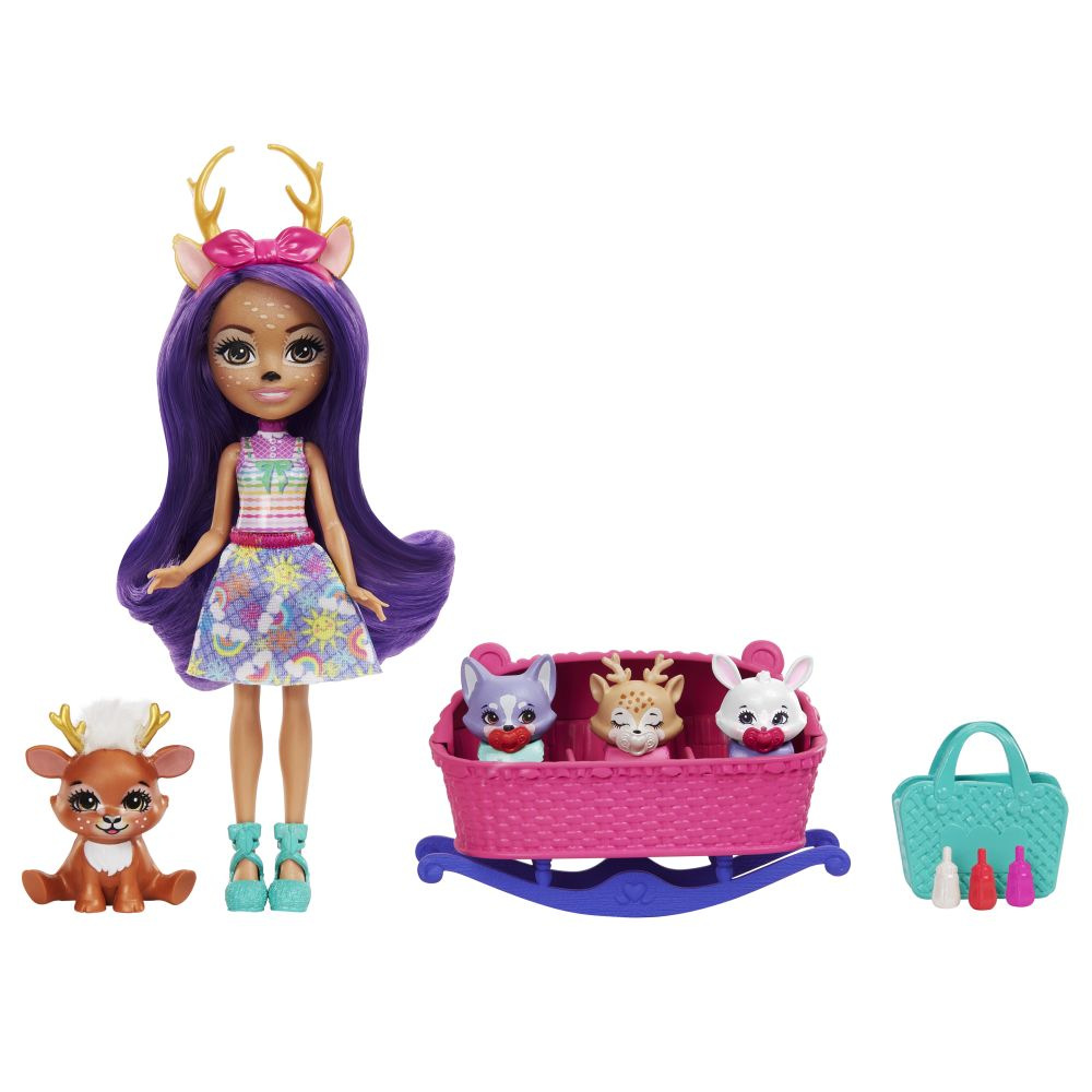 Seznamte se s Enchantimals®, skupinou roztomilých dívek, které mají speciální pouto se svými nejlepšími zvířecími kamarády. Tyto sady obsahují panenku, zvířecího kamaráda, tři zvířecí miminka a také spoustu tajných překvapení! Prodávají se samostatně dle aktuální nabídky.