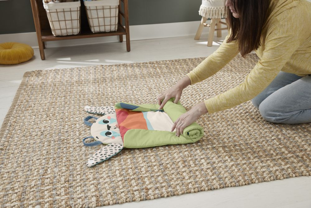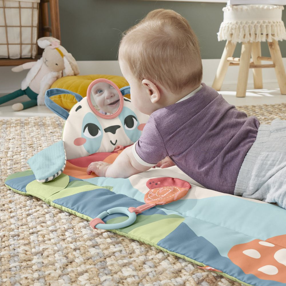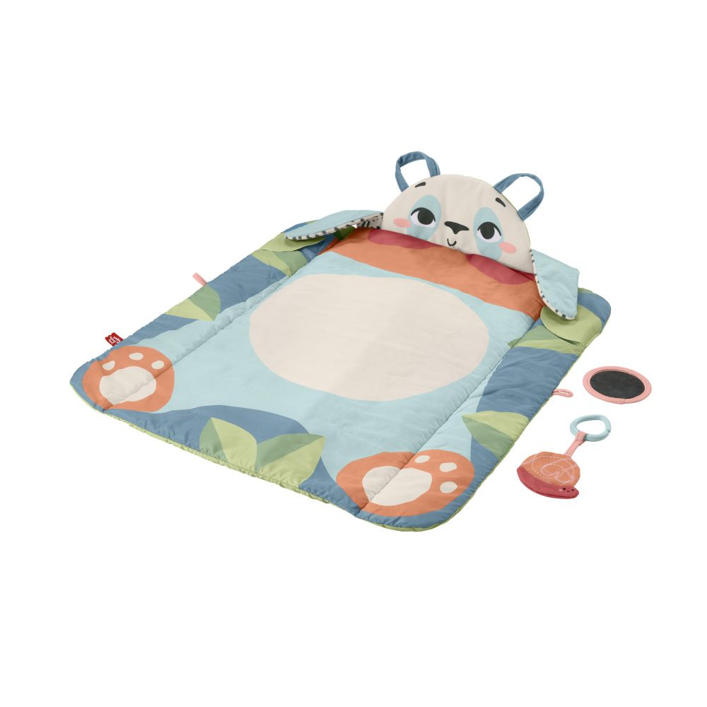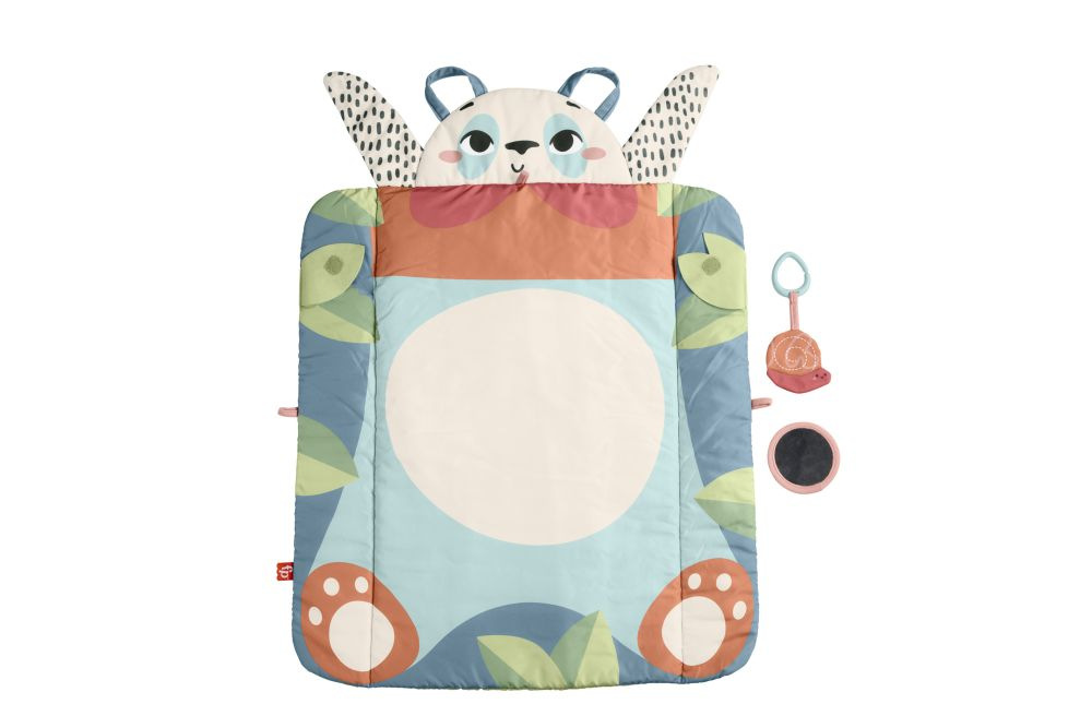 Hrací dečka s baculatou pandou od Fisher-Price® je inspirována zvířaty, na která upozornil Světový fond na ochranu přírody, používá látku vyrobenou z 90 % z recyklovaných plastů a je dodávána v obalu s certifikátem FSC, který podporuje odpovědné lesní hospodářství. Tuto velkou, všestrannou podložku 3 v 1 lze použít k ležení a hraní, pro čas na bříšku i při cestování. Tlapky podepírají výrazně kontrastní čelní panel pro dobu strávenou na bříšku nebo je lze použít k upevnění srolované podložky pro cestovní dobrodružství. Vrnící hračka a zrcátko pro sebepoznávání se spojují s panelem nebo se připevňují na poutka, aby hraní bylo stále inspirativní a zábavné. Podložku lze prát v pračce s vyjmutými hračkami.
