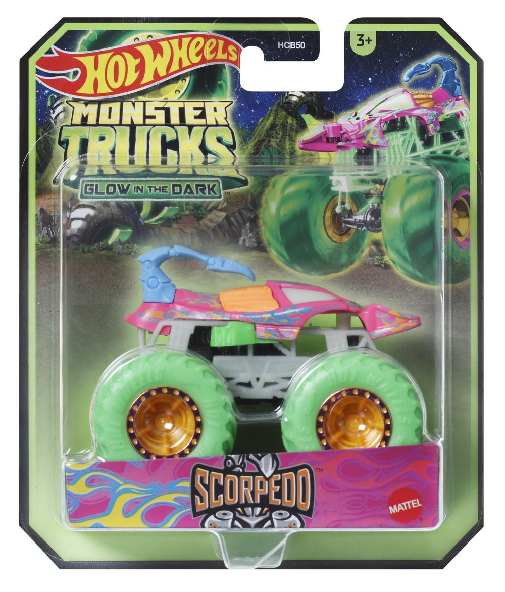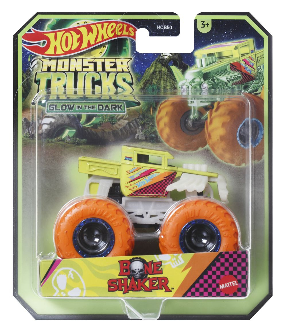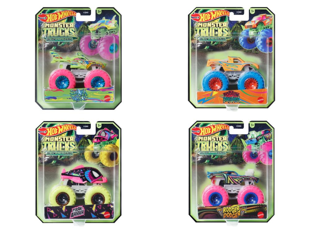 Tahle akce je ještě víc vzrušující, když zhasnou světla a Hot Wheels® Monster Trucks Svítící ve tmě se rozzáří! Na každém autě z téhle řady jsou prvky zářící ve tmě, které ti ukážou, co znamená „rychlost světla“! Sleduj, jak spolu Monster Trucky bojují ve tmě! Mega velká kola a skvělé designy dají novou šťávu nekonečným bouračkám a nárazům. Poznej epický charakter svého auta a užij si s ním ještě lepší zábavu. Pomůže ti k tomu mnoho detailů uvedených na balíčku - jako je jméno, typ vozu, výkon, jedinečný způsob útoku a motorizace. Fanoušci a sběratelé monster trucků je budou chtít všechny! Skvělý dárek pro děti od 3 až do 8 let. Každý se prodává samostatně dle aktuální nabídky. Barvy a vzhled výrobku se mohou lišit.