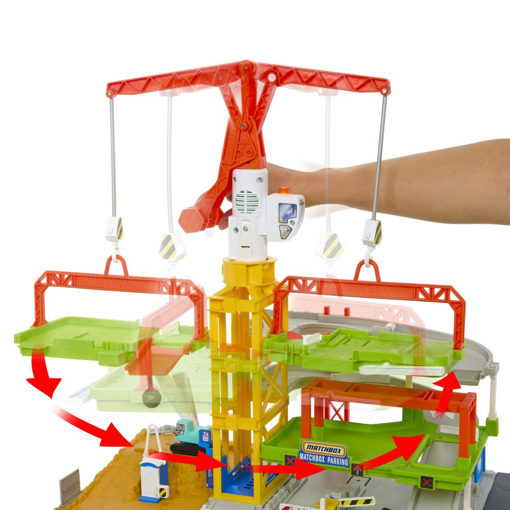 V herním setu Matchbox™ Action Drivers™ Staveniště se světly a zvuky mohou děti prozkoumat realistické staveniště, které je plné zábavných a vzrušujících funkcí aktivovaných dětmi a autíčky. Díky jeřábu poháněnému dětmi a dalšími herními prvky je tento herní set plný dobrodružství! Barvy a vzhled výrobku se mohou lišit.