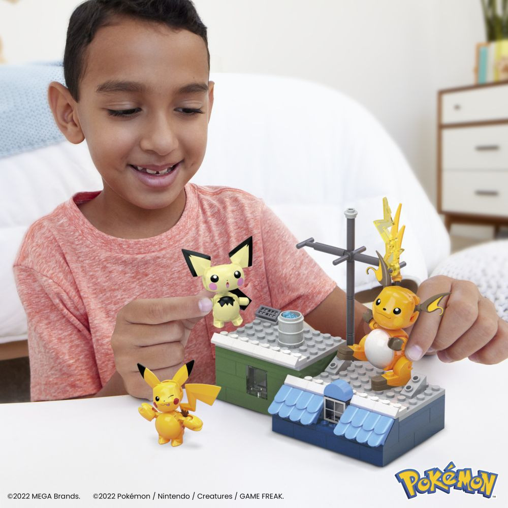 Připravte se na bitvu s báječným triem. Tento set obsahuje Pichu, Pikachu a Raichu s kloubovými končetinami a prostředí na střeše. Sestavte všechny 3 postavičky spolu se zvláštním prostředím s bitevními detaily, do kterého lze postavičky napózovat.