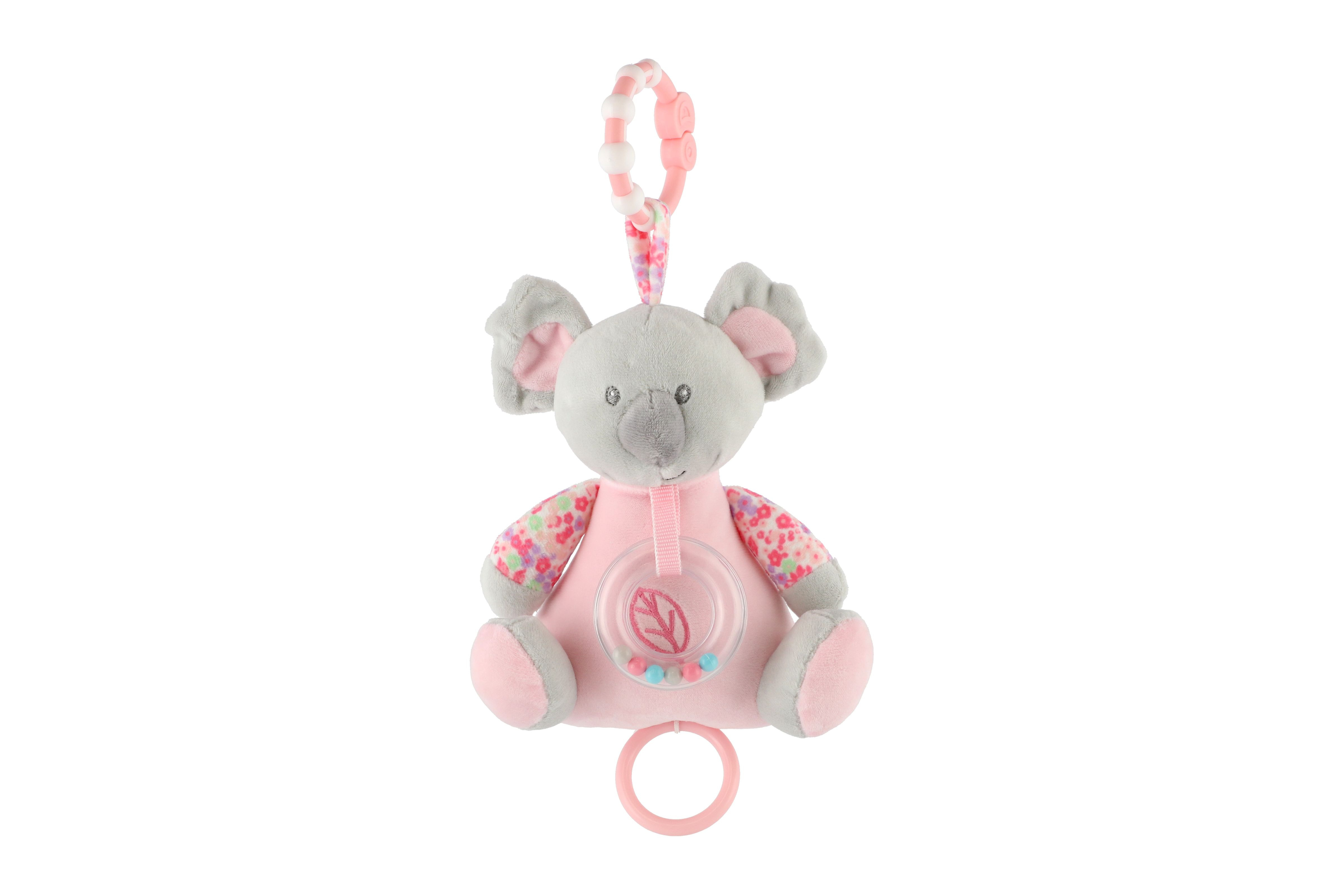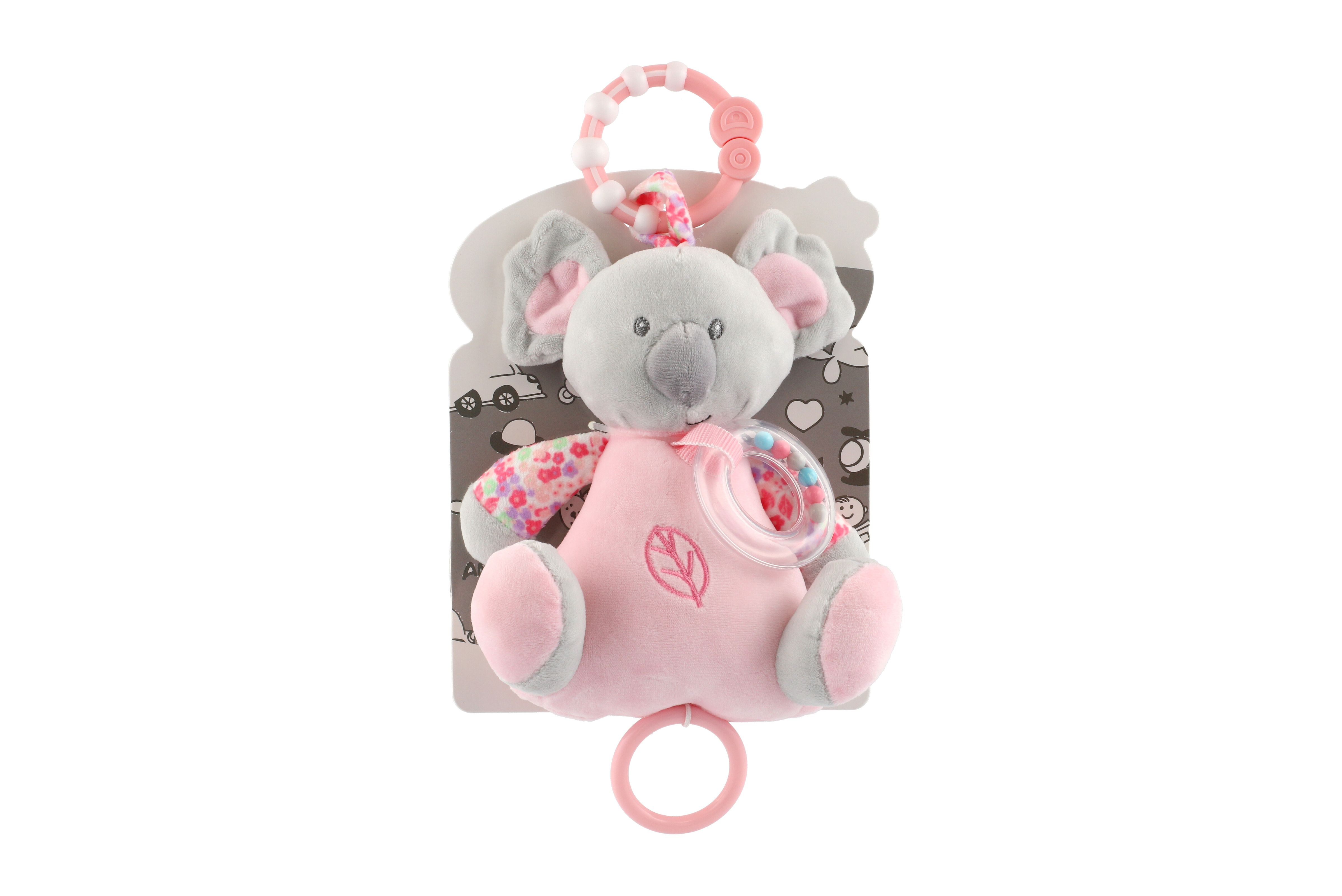 Teddies Medvěd koala chrastítko plyš 19cm závěs na post./koč. nat. hrací strojek růžový na kartě v sáčku 0+