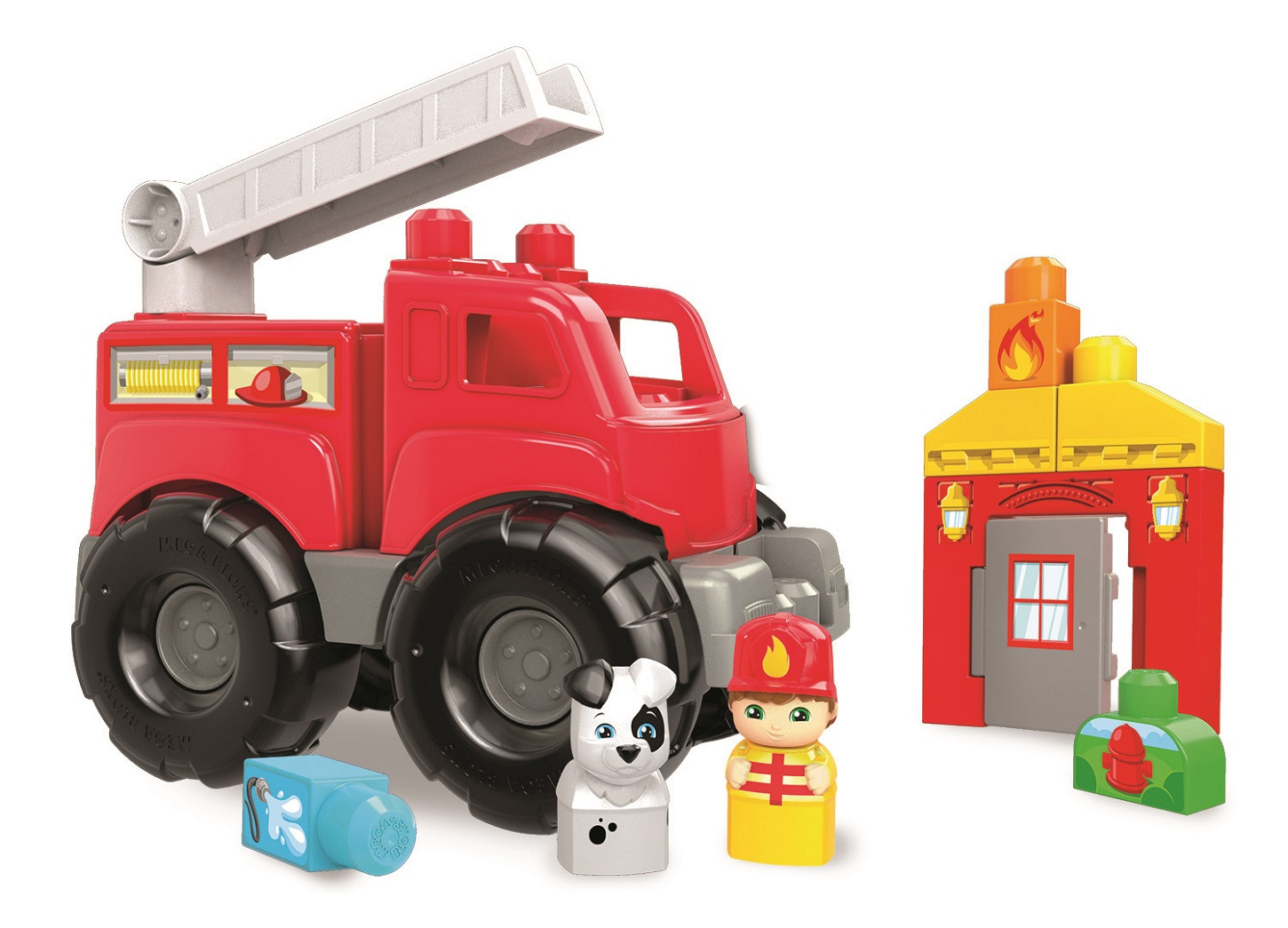 Vyraz do záchranné akce s tímto velkým červeným hasičským vozem! S ním všichni malí odvážní hrdinové prožijí opravdové hasičské dobrodružství! Použij kostky a speciální dílky a postav pestrobarevnou hasičskou stanici. Postavit ji je jednoduché. Potom otevři na stanici dveře a pošli hasiče na záchrannou akci. Usaď hasiče za volant červeného hasičského vozu, rozjeď se a akce může začít. Dokonce s sebou na cestu můžeš vzít i roztomilého pejska a dovnitř do vozu naložit všechny potřebné kostičky! Vysuň žebřík a vylez nahoru na budovu, uhas oheň a zachraň situaci. Nakonec se vrať zpátky na hasičskou stanici a vylož ven z auta všechny kostičky. Všechny dílky jsou dokonale přizpůsobeny malým dětským ručičkám a rozvíjí děti už od raného věku.