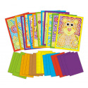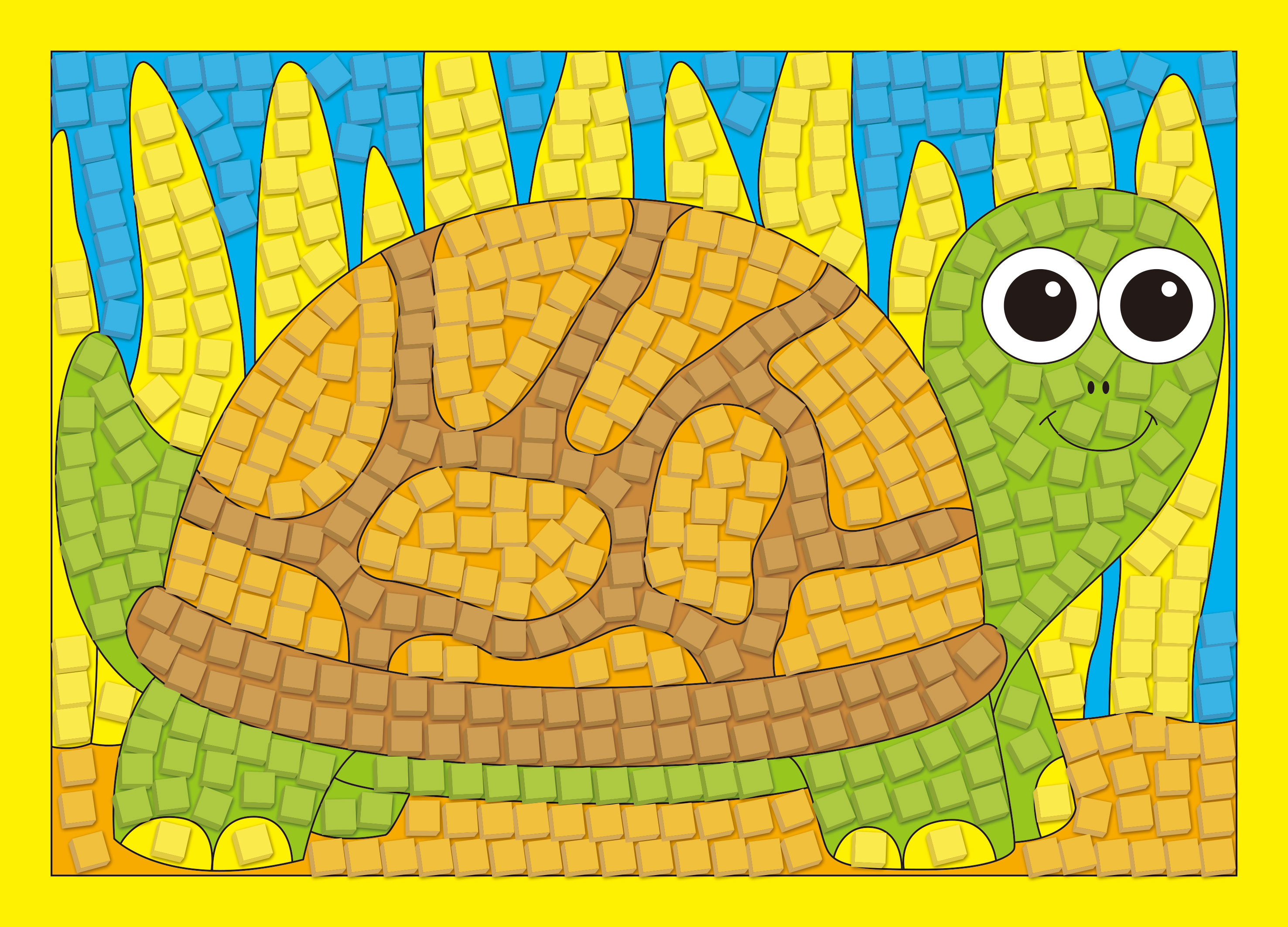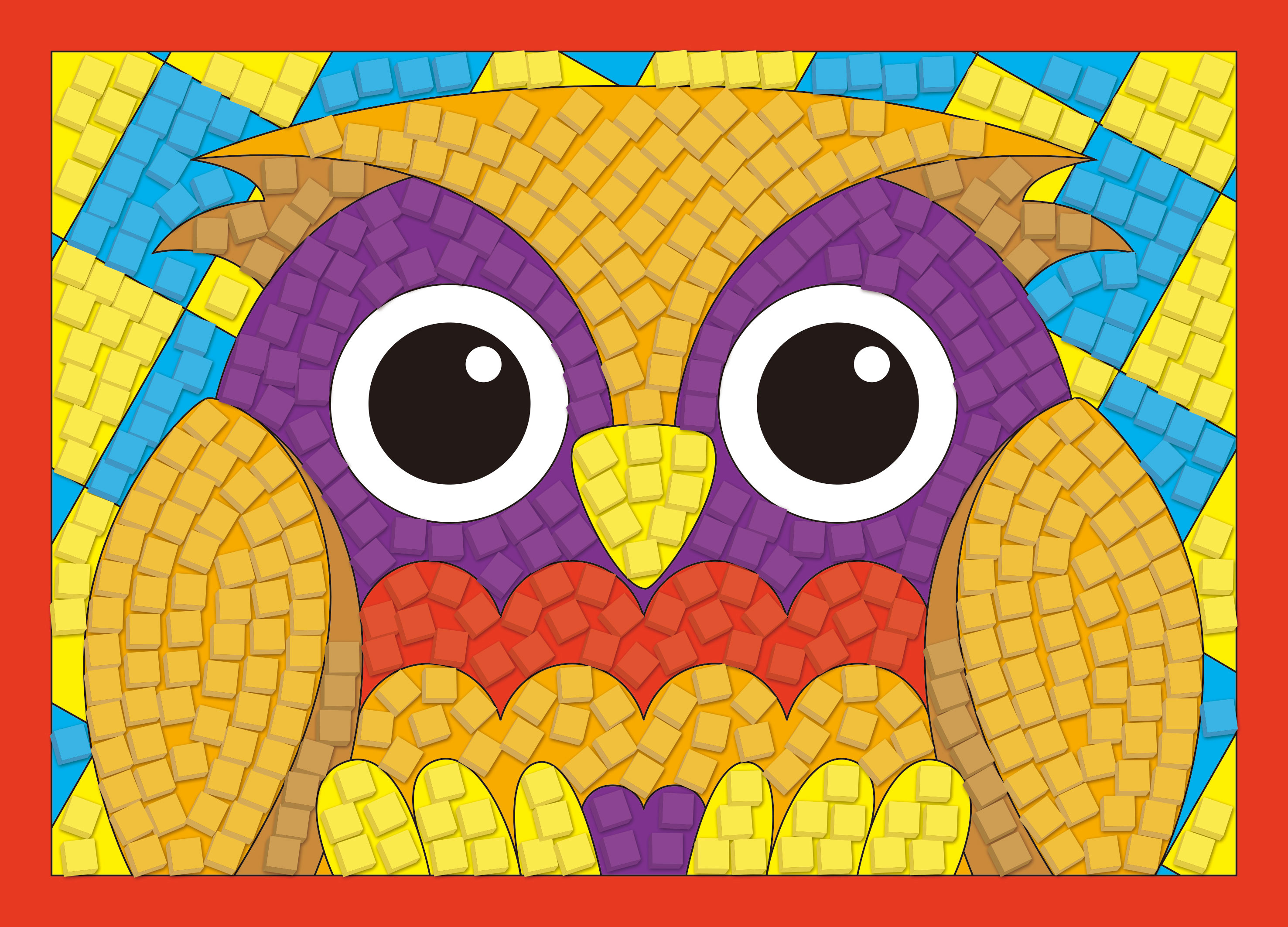 Sada obsahuje 12 obrázků, na které děti lepí barevné pěnové kousky, z kterých vznikne nádherná mozaika. Na obrázcích jsou vyznačená pole s čísly, na která se jednoduše lepí pěnové kousky odpovídající barvy. Lepení probíha bez lepidla, stačí jen odlepit pěnové kousky z platíčka a přilepit na obrázek.