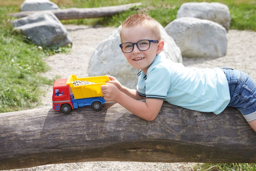 Aktivní auto sklápěč z kvalitního plastu a velmi pevnou stavbou. Je plně mechanicky funkční. Obsahuje pojistku proti nežádoucímu vyklopení, odklopitelnou kabinu a vyjímatelného panáčka. Délka: 29 cm. Vhodné pro kluky od 3 let.