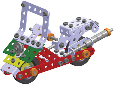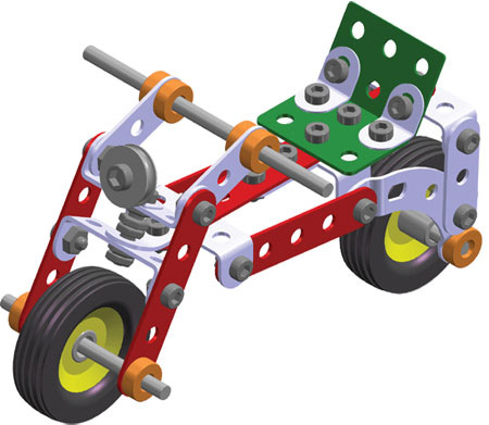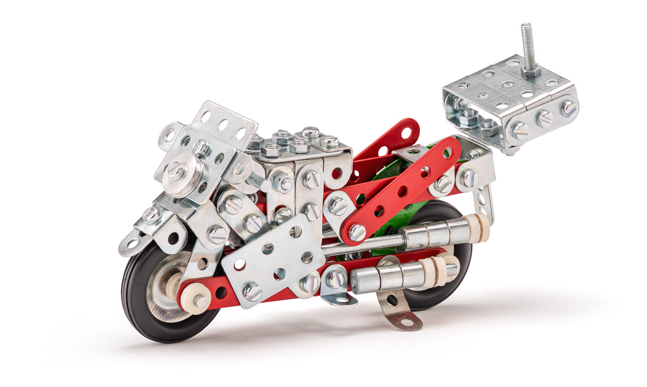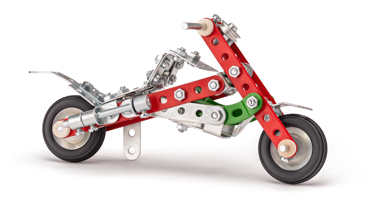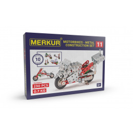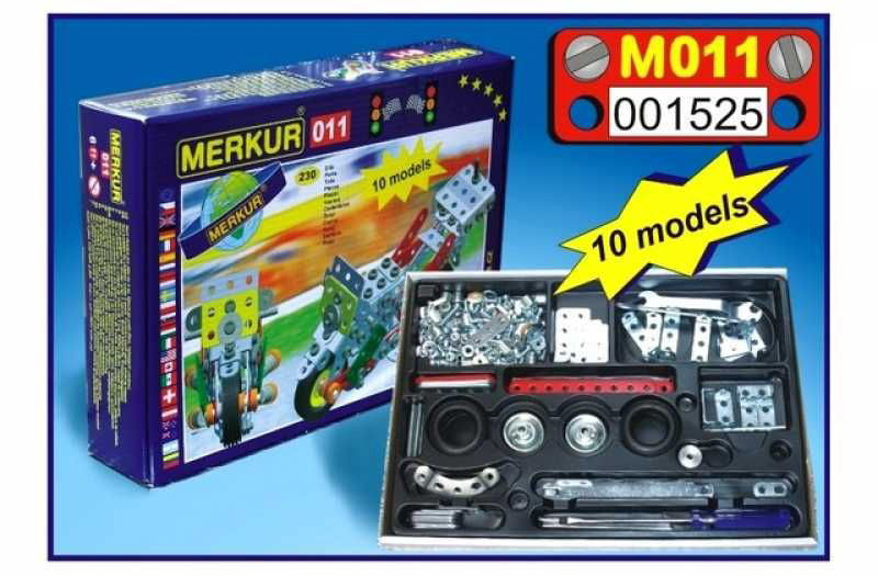 Ze stavebnice Merkur 011 Motocykl je možné dle návodu sestavit až 10 různých modelů motocyklů a jiných vozítek. Malí konstruktéři mohou sestavit i model dle svých představ, fantazii se meze nekladou. Stavebnice obsahuje 222 dílků. Vhodné i pro děti, které s Merkurem začínají. Se sestavenými modely si lze hrát, jsou velmi odolné. Rozměr balení: 26 x 18 x 5 cm. Věk: 6+. Nevhodné pro děti mladší 3 let.