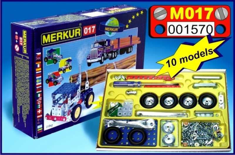 Ze stavebnice Merkur 017 Kamión je možné dle návodu sestavit až 10 různých modelů nákladních aut. Malí konstruktéři mohou sestavit i model dle svých představ, fantazii se meze nekladou. Stavebnice obsahuje 202 dílků. Vhodné i pro děti, které s Merkurem začínají. Se sestavenými modely si lze hrát, jsou velmi odolné. Rozměr balení: 26 x 18 x 5 cm. Věk: 6+. Nevhodné pro děti mladší 3 let.