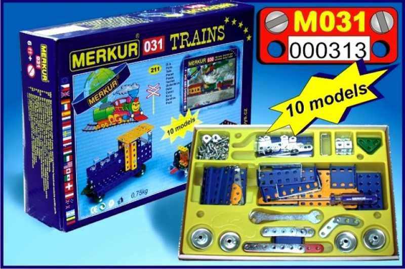 Z této jednovrstvé stavebnice se dá sestavit 10 různých modelů, např. lokomotivu, nákladní vagón a několik dalších železničních modelů. Stavebnice obsahuje 220 dílků včetně návodu a nářadí. Vhodné i pro děti, které s Merkurem začínají. Se sestavenými modely si lze hrát, jsou velmi odolné. | Počet dílů: 220 | Rozměr balení: 25,5 x 18 x 5 cm | Věk: 5+ | Nevhodné pro děti mladší 3 let | Váha: 0,8 kg