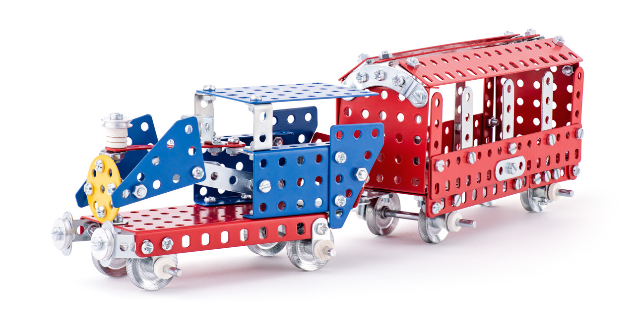 Z této jednovrstvé stavebnice se dá sestavit 10 různých modelů, např. lokomotivu, nákladní vagón a několik dalších železničních modelů. Stavebnice obsahuje 220 dílků včetně návodu a nářadí. Vhodné i pro děti, které s Merkurem začínají. Se sestavenými modely si lze hrát, jsou velmi odolné. | Počet dílů: 220 | Rozměr balení: 25,5 x 18 x 5 cm | Věk: 5+ | Nevhodné pro děti mladší 3 let | Váha: 0,8 kg