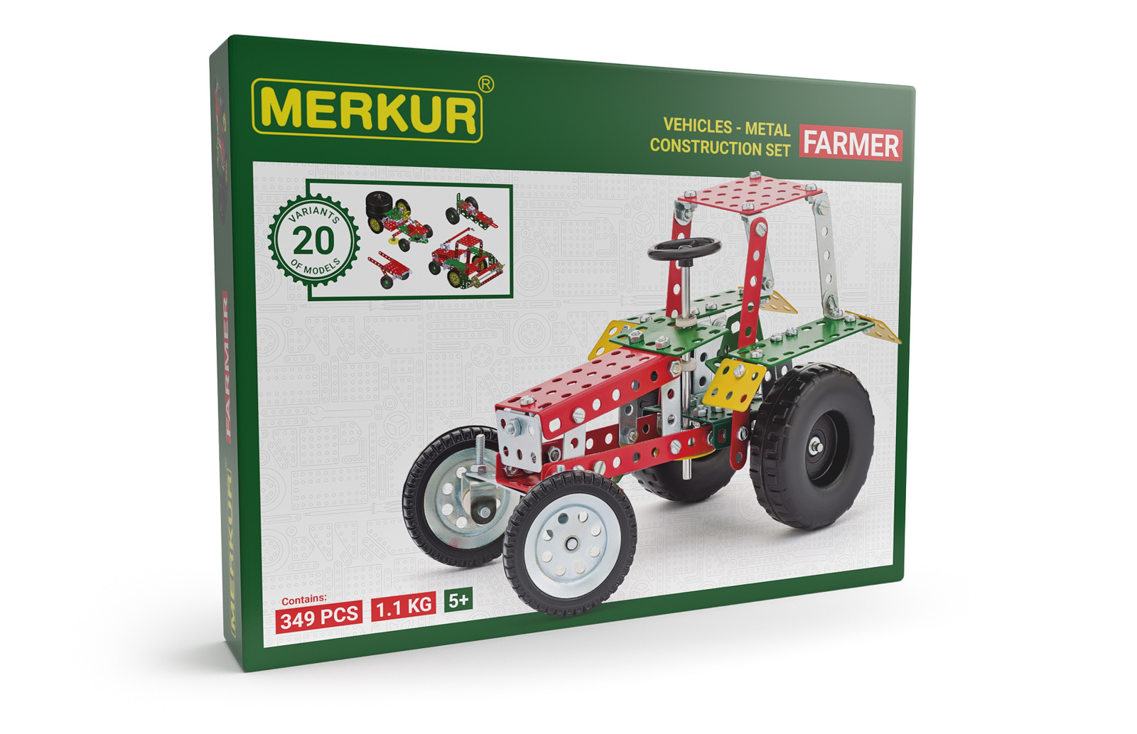 Ponořte se na chvíli do krás českého venkova, vezměte na sebe povinnosti farmářů a pracovníků v zemědělství, to vše nabízí speciální stavebnice Merkur Farmer Set. Postavíte si traktory s vleky, sekačku na trávu či dokonce kombajn. Tato jedinečná sada je ideálním nástrojem pro rozvoj technických dovedností a představivosti dětí. Stavebnice obsahuje kvalitní kovové díly, které se snadno spojují šroubky, což podporuje rozvoj jemné motoriky, logického myšlení a soustředění. Součástí stavebnice je velká návodová knížka s návodem na stavbu 20 různých venkovských modelů, zapojit však můžete i vlastní fantazii a postavit si takové stroje, jaké vás napadnou. Počet dílků: 349. Rozměry balení: 27 x 36 x 5,5 cm. Nevhodné pro děti mladší 3 let. Věk: 5+