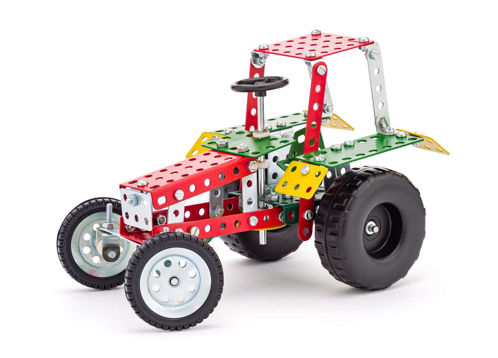 Ponořte se do světa kreativity a zábavy se stavebnicí Merkur Traktor s řízením. Tato jedinečná sada je ideálním nástrojem pro rozvoj technických dovedností a představivosti dětí. Díky kovovým dílkům si malí stavitelé mohou sestavit model traktoru s funkční přední osou, díky které lze zatáčet pomocí volantu. Stavebnice obsahuje kvalitní kovové díly, které se snadno spojují šroubky, což podporuje rozvoj jemné motoriky, logického myšlení a soustředění. Sada obsahuje: 208 dílků. Úroveň Merkur obtížnosti: 3. Baleno v krabičce. Rozměry modelu: 13 x 10 x 16 cm. Rozměry balení: 18,2 x 26,3 x 5,5 cm. Nevhodné pro děti do 3 let. Věk: 5+