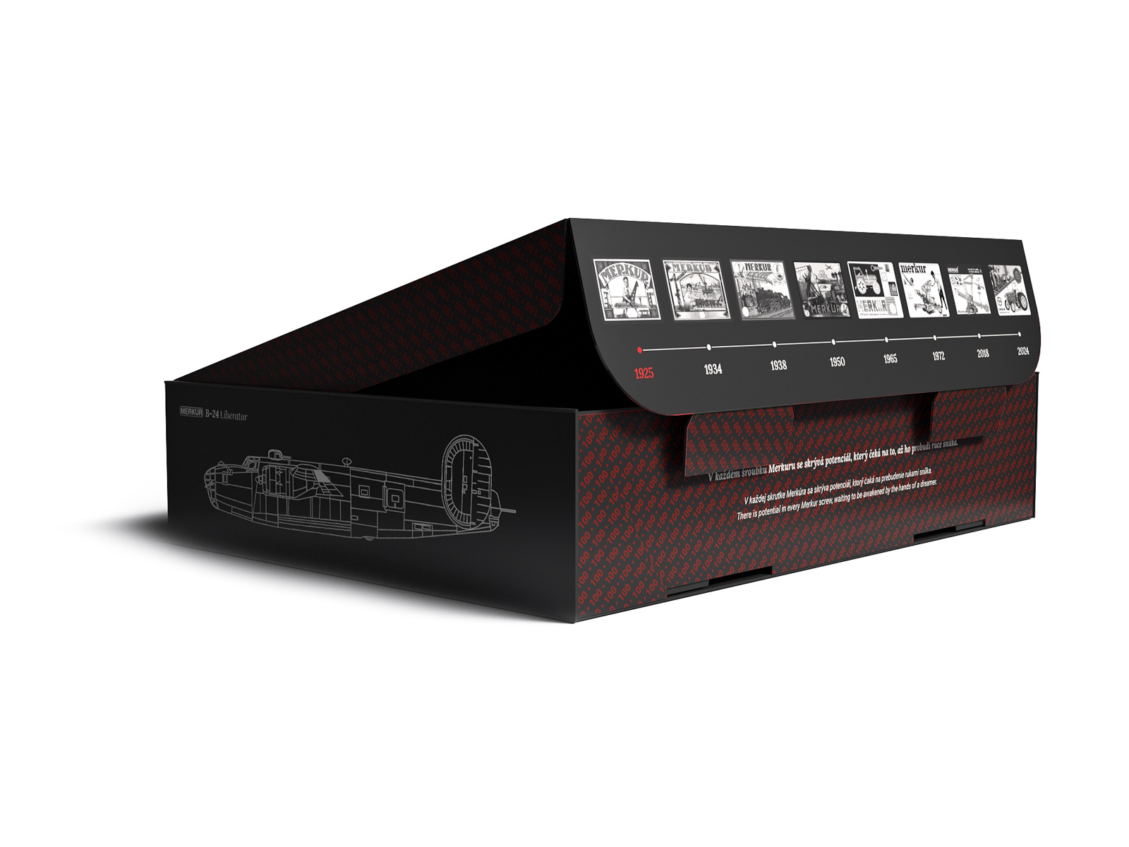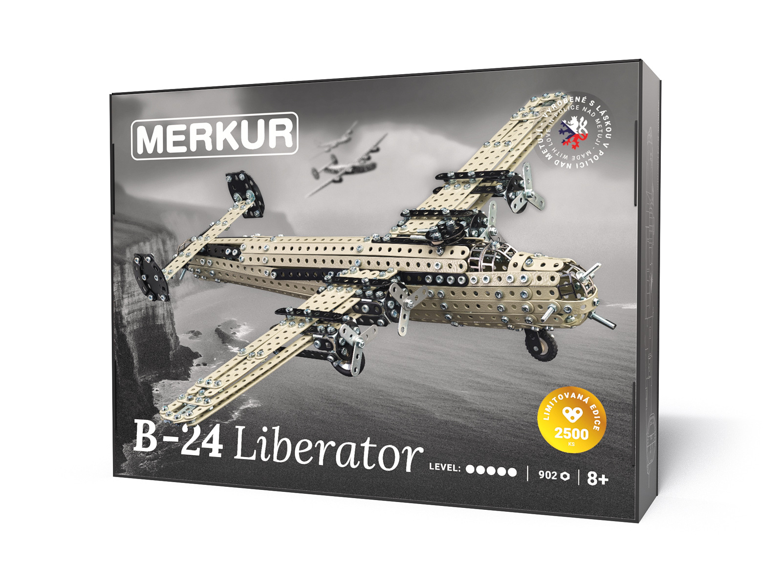 Limitovaná edice stavebnice Bombardér B-24 Liberator k oslavě výročí 100 let stavebnice Merkur a k poctě českého letce a rodáka z Police nad Metují Františka Švejdara. Stavebnice obsahující 902 dílků vychází v limitované sérii 2 500 ks, a kromě modelu letadla s rozpětím křídel neuvěřitelných 55,5 cm se můžete těšit i na poutavý příběh, který je součástí krásně zpracované brožury. Jedinečnost stavebnice podtrhuje také přiložený podepsaný certifikát s číslem stavebnice. 100 ks z 2 500 mají navíc limitovanou podepsanou Merkur skicu. S obtížností stavění na levelu 5 doporučujeme stavebnici pro děti od věku 8 let a optimálně s asistencí dospělého. Rozměr balení: 27 x 35 x 8 cm. Rozměr sestaveného modelu: 55,5 x 10,5 x 46 cm. Věk: 8+