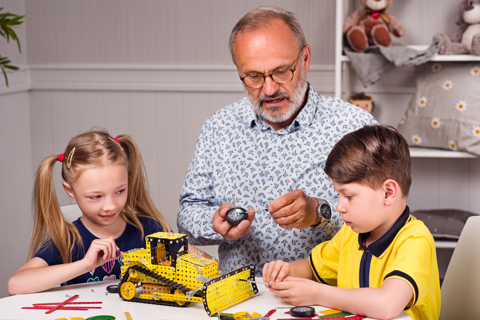 Jedná se o exkluzivní stavebnici, která je replikou podobných stavebnic ze začátku minulého století. Veškeré součástky jsou z tradičních materiálů a v barvách jako je zinek, patina či bezbarvý lak. Neobsahuje klasický návod, pouze knihu předloh. Tato jedinečná sada je ideálním nástrojem pro rozvoj technických dovedností a představivosti dětí. Stavebnice obsahuje kvalitní kovové díly, které se snadno spojují šroubky, což podporuje rozvoj jemné motoriky, logického myšlení a soustředění. Počet dílků: 929. Úroveň Merkur obtížnosti: 3. Barvy, velikost a vzhled výrobku se mohou lišit oproti uvedeným fotografiím. Baleno v krabičce. Rozměry balení: 29 x 38 x 5 cm. Nevhodné pro děti mladší 3 let. Věk: 6+