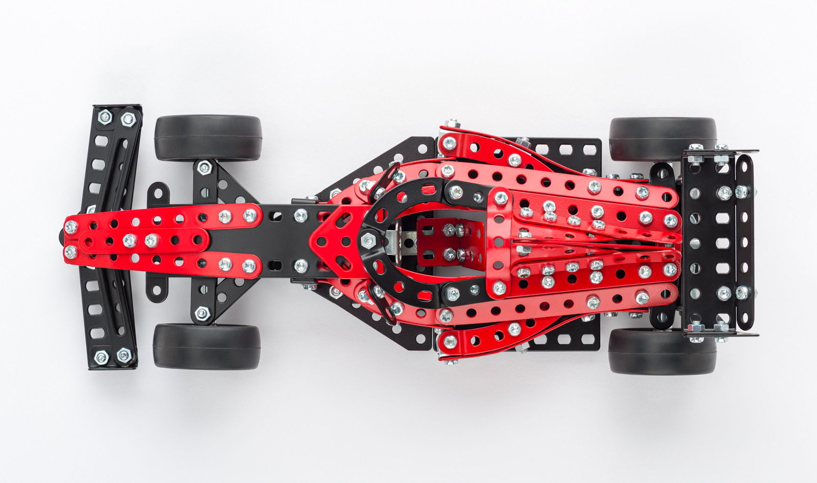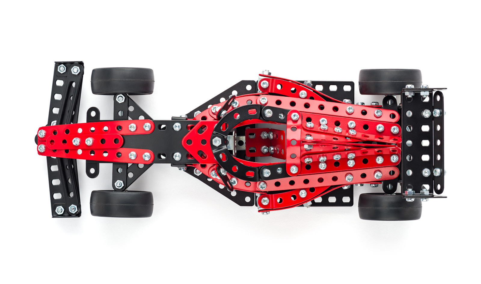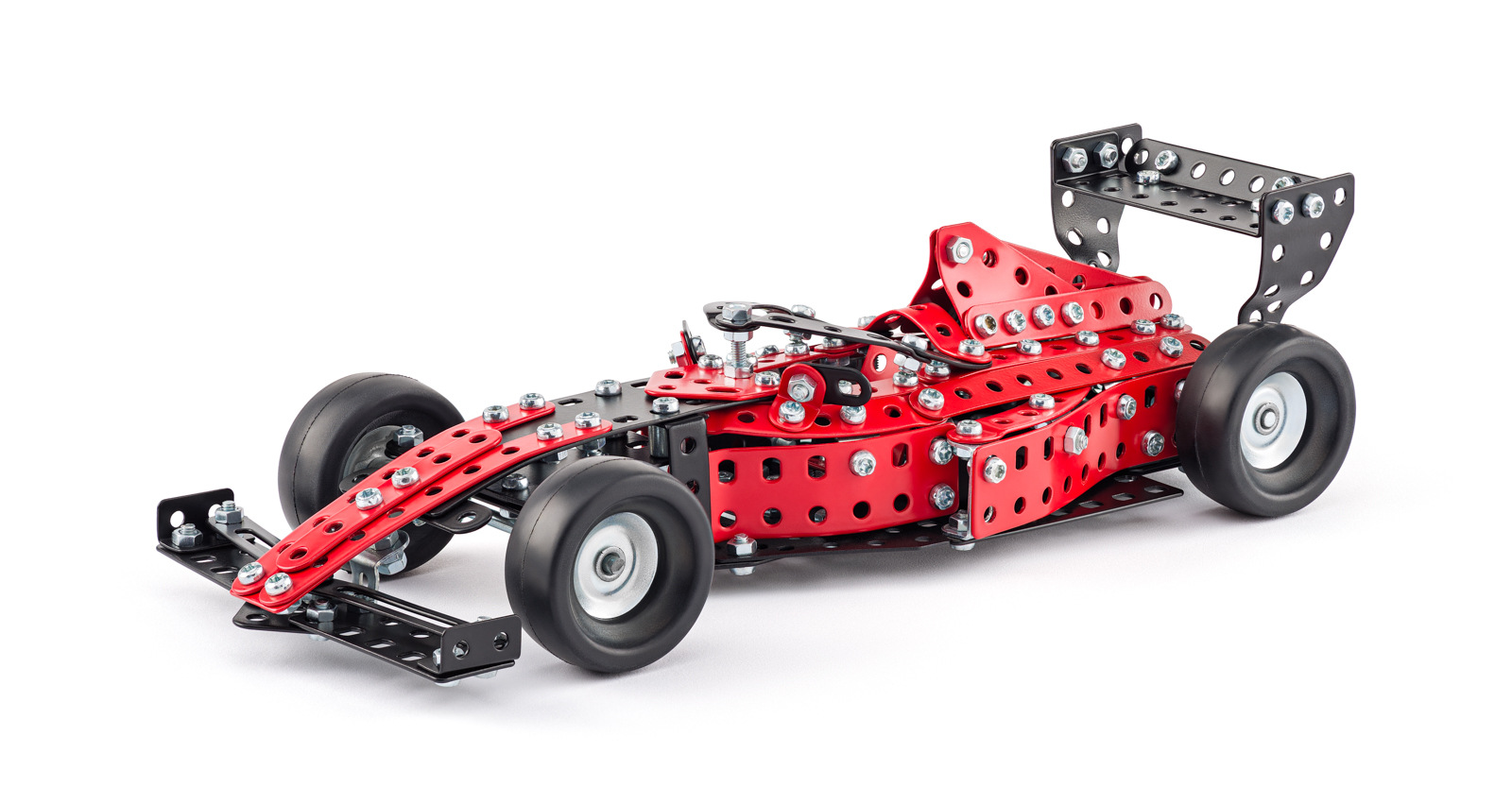 Zajeď si závod v červeno-černé Formuli 1! Model s gumovými pneumatikami tě vtáhne do světa rychlosti a přesnosti. Připrav se na pořádnou jízdu plnou zábavy i výzev. Model obsahuje i drobné detaily jako závodní volant, sedačku, zrcátka. Se sestaveným modelem si lze hrát, je velmi odolný. V balení najdete podrobný návod. Merkur díly jsou univerzální, a tak vás neomezí v jakékoli modifikaci a nápadu. Stavebnici tak můžete sestavit podle přiloženého návodu nebo čistě podle svých představ. Se sestavenými modely si lze hrát, jsou velmi odolné. Podporuje rozvoj manuálních dovedností, logického myšlení a soustředění. Počet dílků: 430 ks. Úroveň Merkur obtížnosti: 4. Baleno v krabičce. Rozměry modelu: 6,2 x 29 x 10,4 cm. Rozměr balení: 23 x 34 x 5,7 cm. Věk: 5+