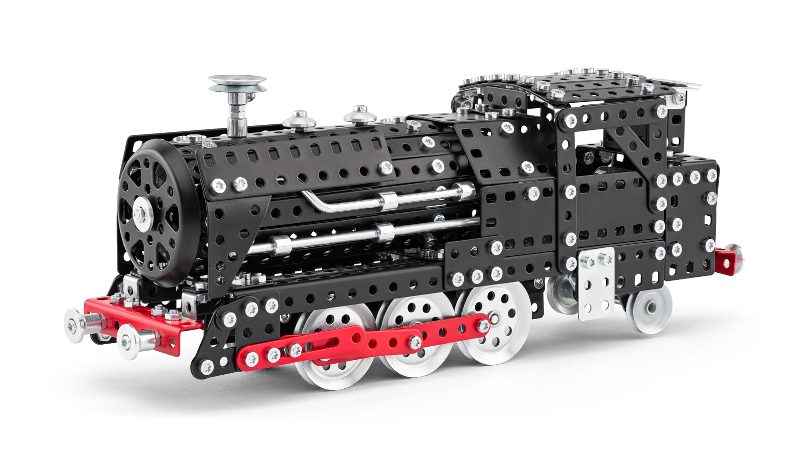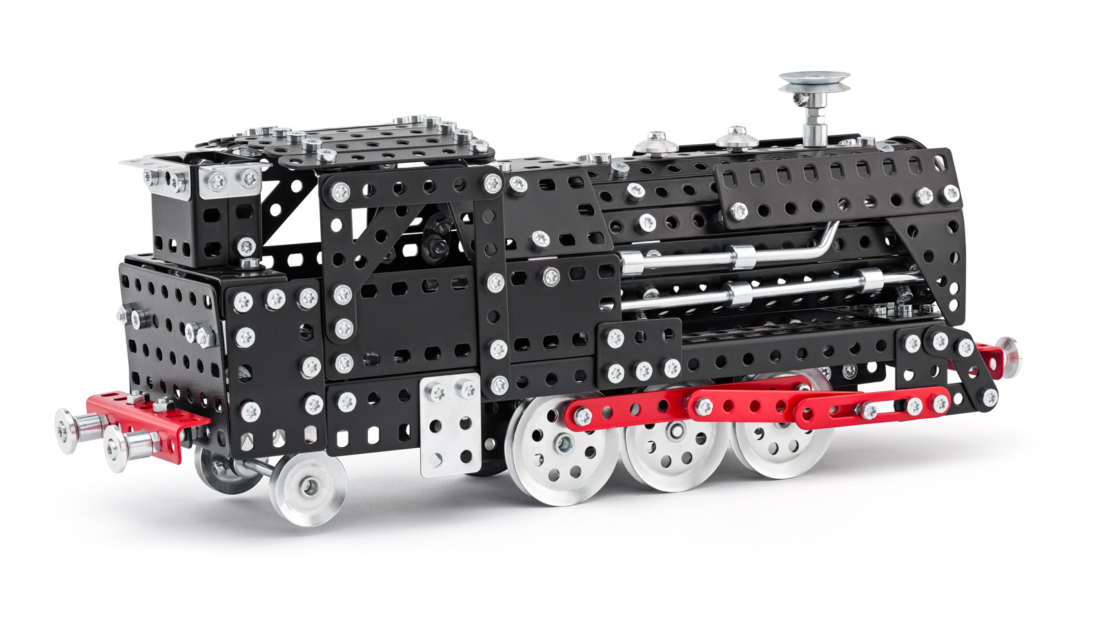 Kovový model lokomotivy v ikonické černé barvě s červenými prvky. Pohyblivá kola a spojnice. Kabina strojvedoucího, detaily parních trubek, komín, písty, přední reflektory, spřáhla. Se sestaveným modelem si lze hrát, je velmi odolný. V balení najdete podrobný návod. Merkur díly jsou univerzální, a tak vás neomezí v jakékoli modifikaci a nápadu. Stavebnici tak můžete sestavit podle přiloženého návodu nebo čistě podle svých představ. Podporuje a rozvíjí manuálních schopnosti, logické myšlení, soustředění. Počet dílků: 596 ks. Úroveň Merkur obtížnosti: 3. Baleno v krabičce. Rozměry modelu: 11,5 x 31,5 x 8 cm. Rozměry balení: 23 x 33 x 5,7 cm. Nevhodné pro děti mladší 3 let. Věk: 8+