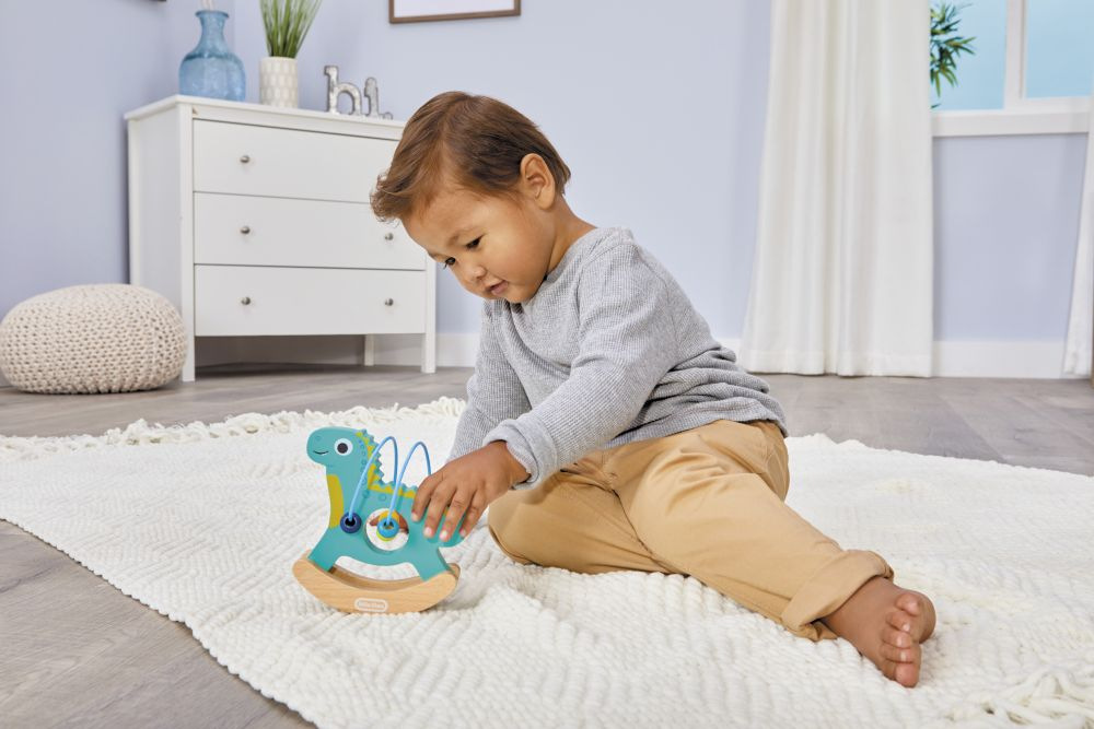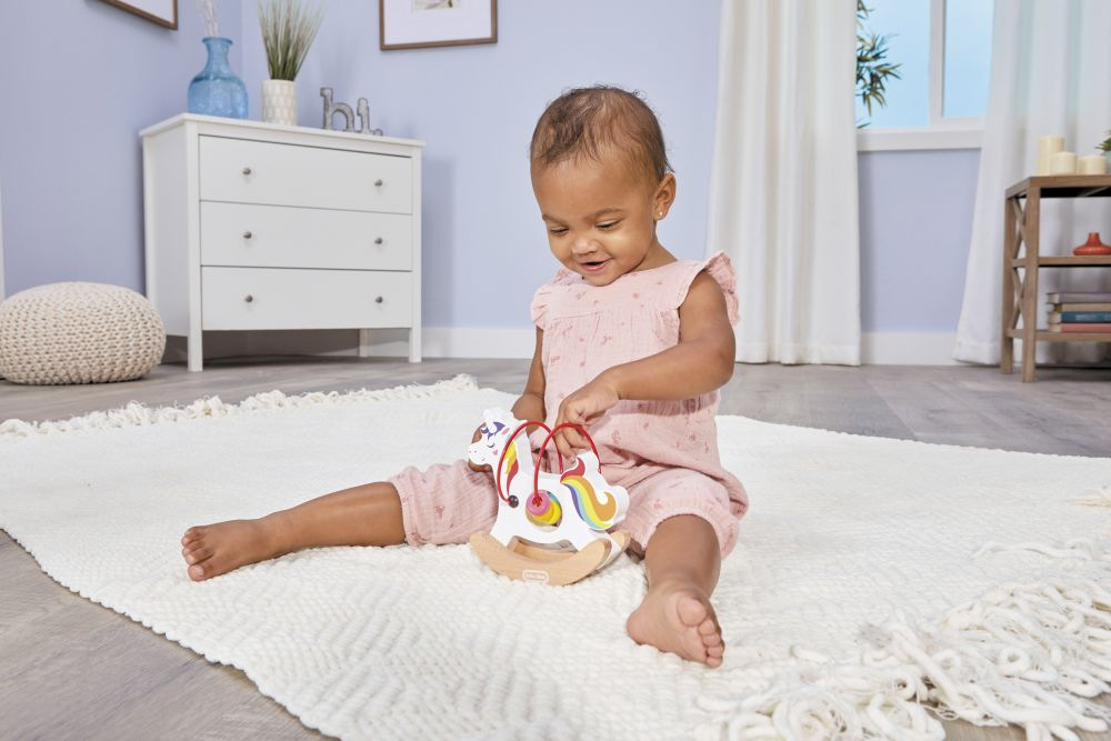 Little Tikes nabízí jedinečnou řadu dřevěných hraček pro batolata, které poskytují jednoduchou klasickou hru v kreativním designu. Houpací zvířátko má na sobě bludiště se 6 korálky, které klouzají po barevném drátku. Zatlačte na hračku a bude se houpat. Zvířátko má vlastní jedinečný tvar a jasný barevný design.